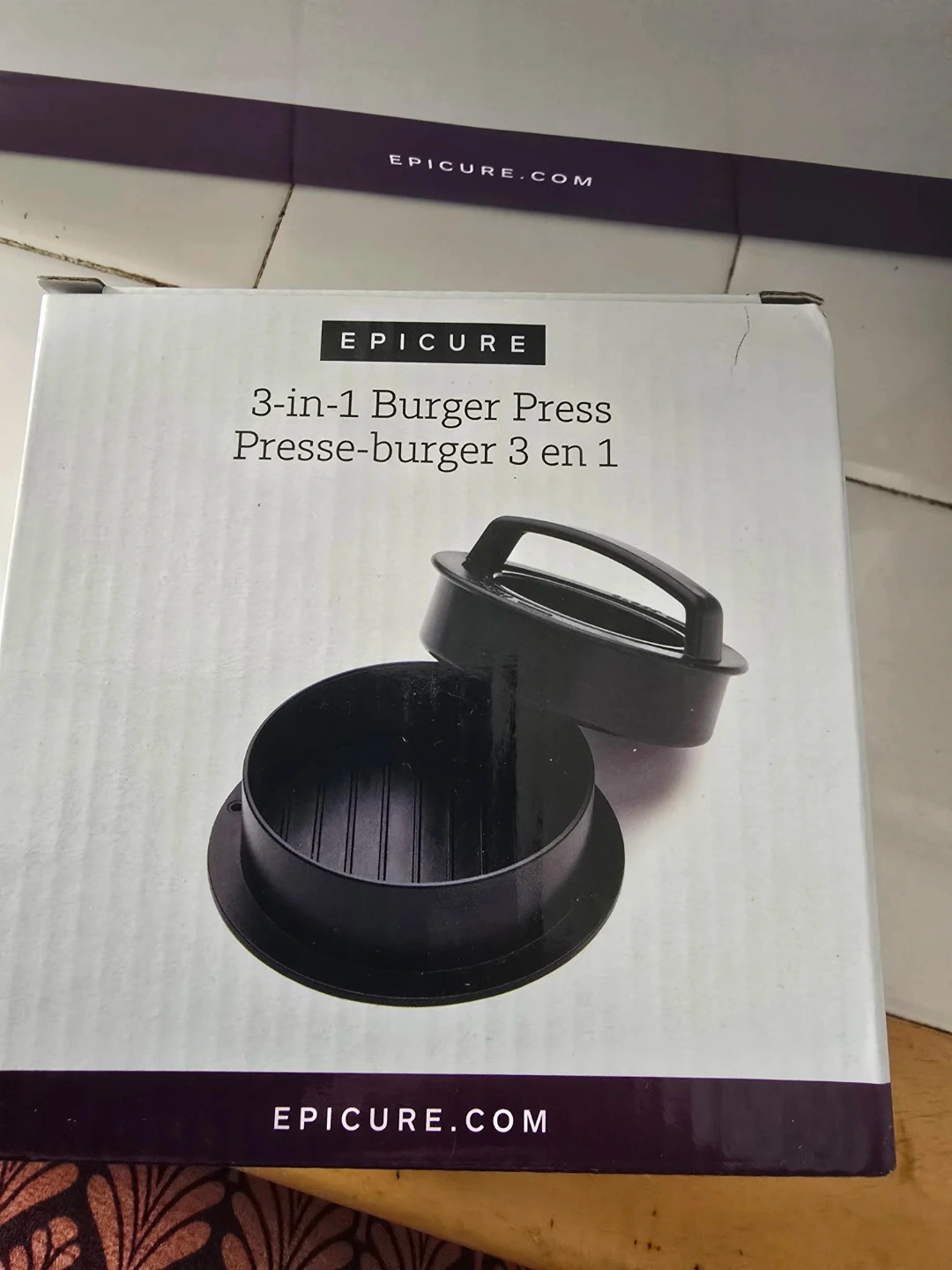 This is an EPICURE 3-in-1 Burger Press. It's designed for making burgers. It's great for home cooks who enjoy making their own patties!