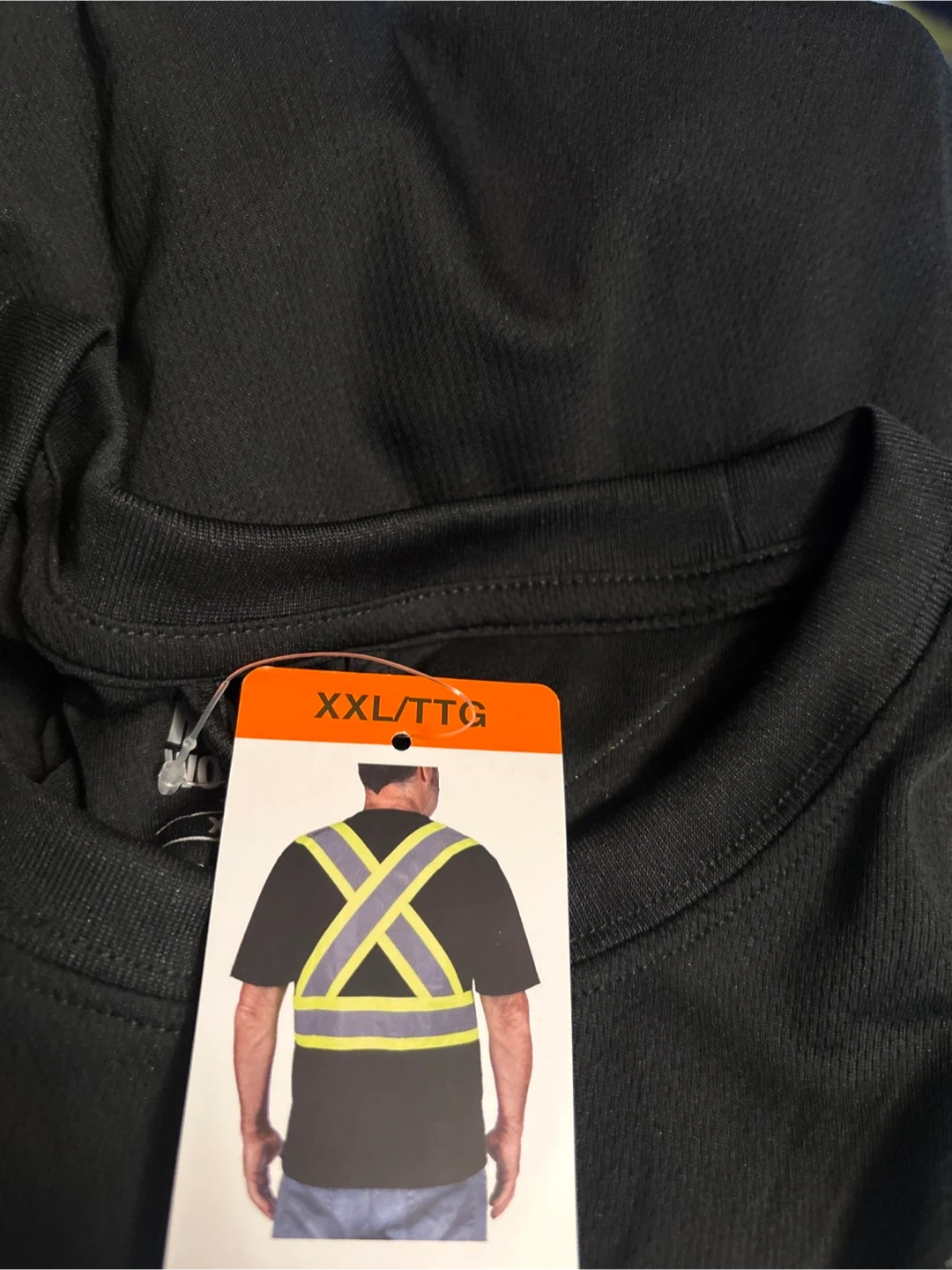 I'm selling a brand new Holmes Workwear safety t-shirt. It's black with reflective stripes and is size XXL/TTG. Perfect for work!