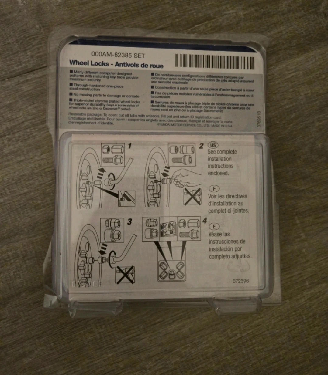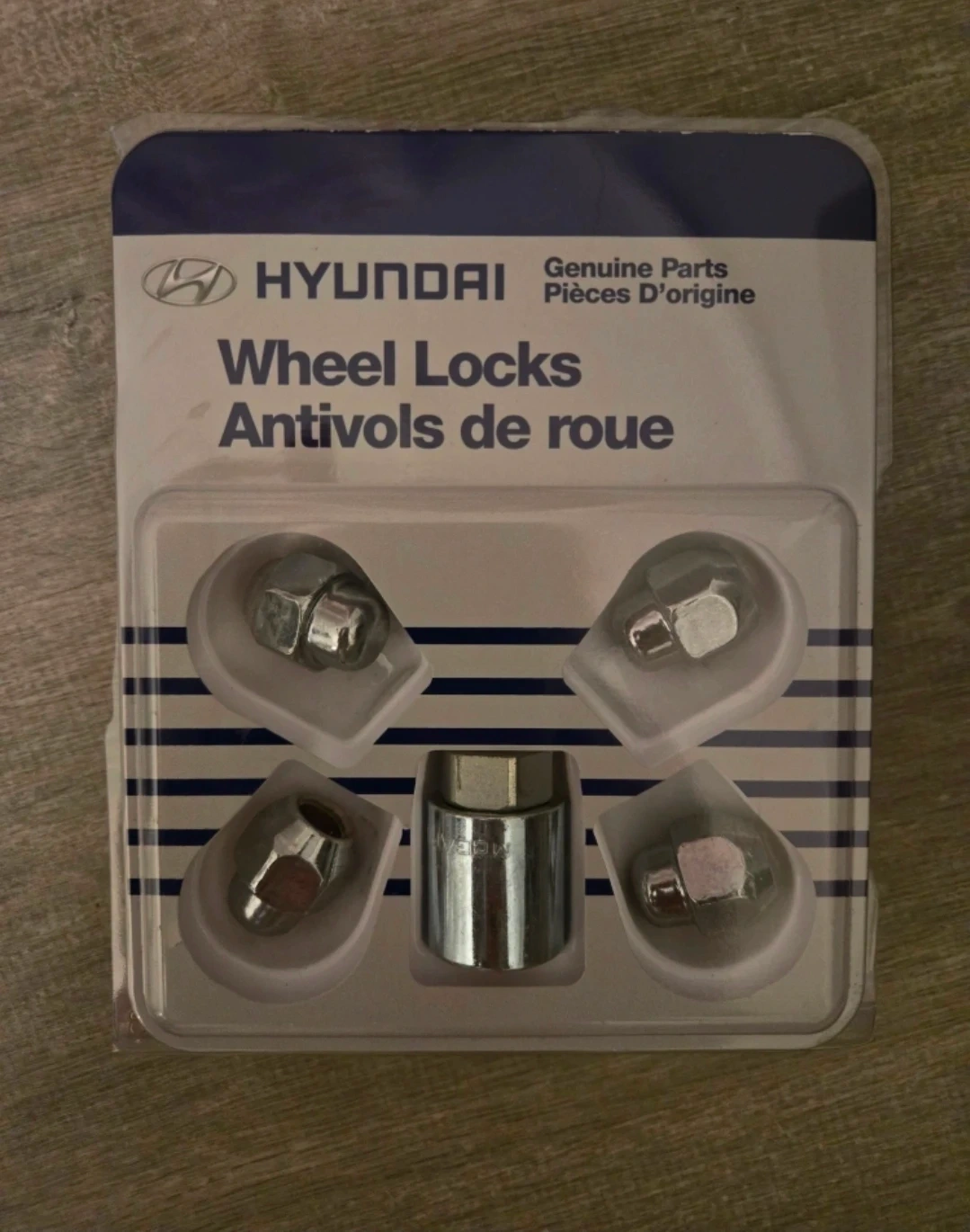 Selling a set of Hyundai wheel locks. They are genuine Hyundai parts and come in the original packaging. These wheel locks are designed to prevent theft and are easy to install. Keep your wheels safe and secure!