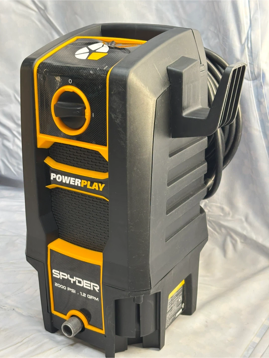 This is a Powerplay Spyder pressure washer. It's rated for 2000 PSI and 1.2 GPM. This unit's designed for powerful cleaning tasks.