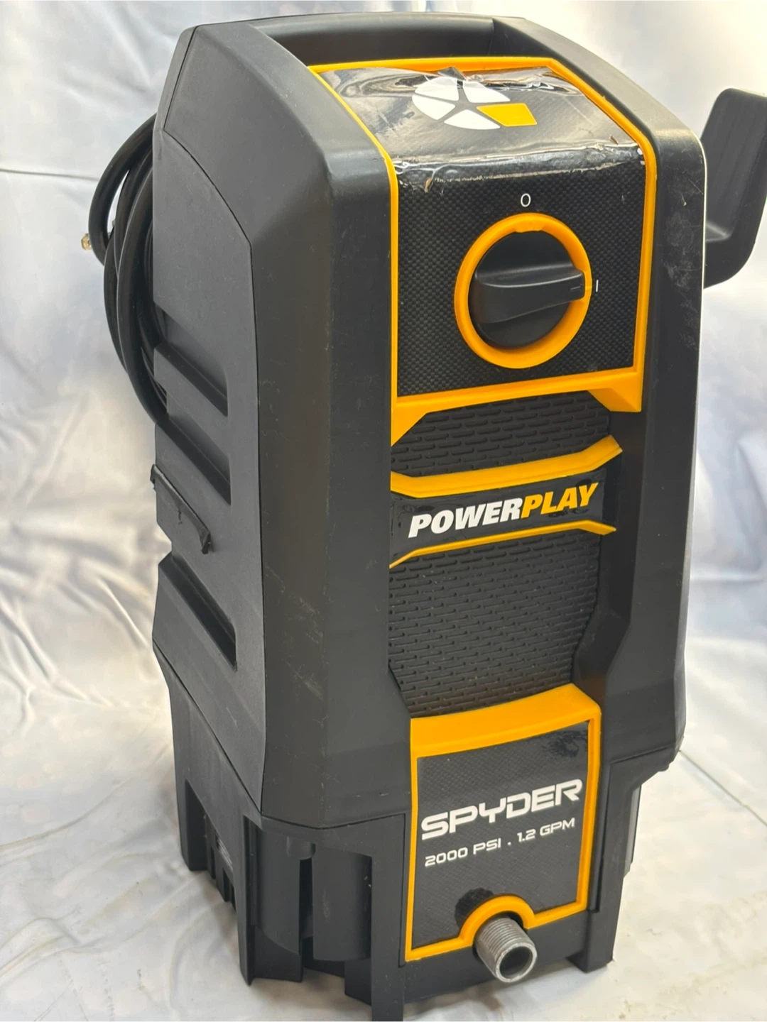 This is a Powerplay Spyder pressure washer. It's rated for 2000 PSI and 1.2 GPM. This unit's designed for powerful cleaning tasks.