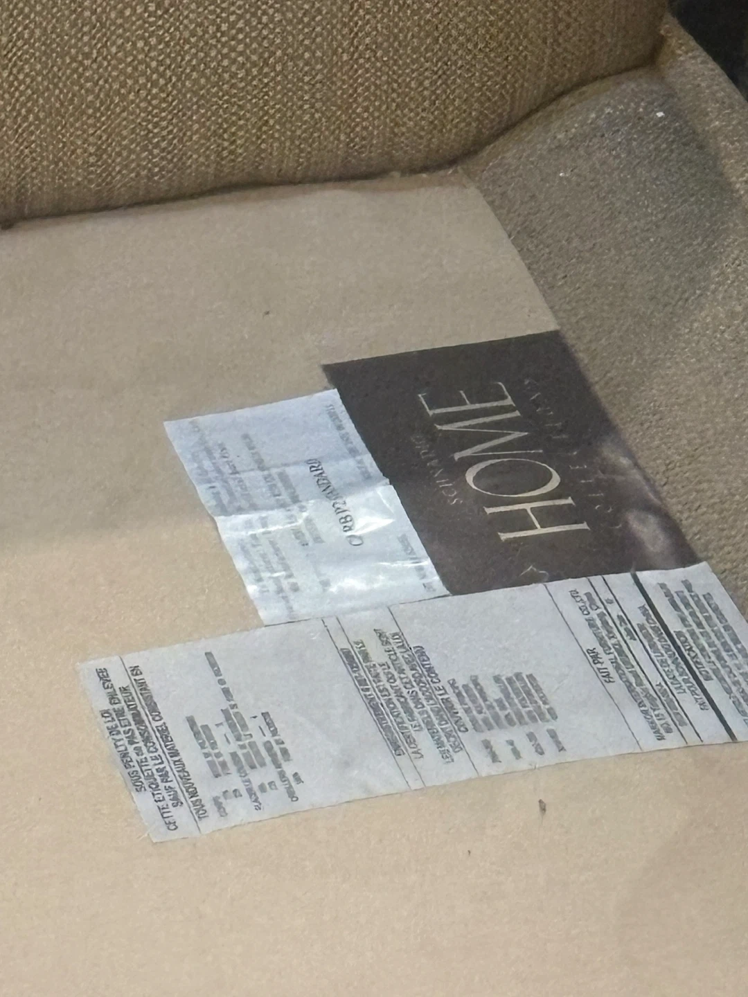 This is a Signature HOME Collection loveseat sofa. It's upholstered in a textured beige fabric with a pleated skirt. The sofa has a supportive seat and a distinctive rolled armrest design.