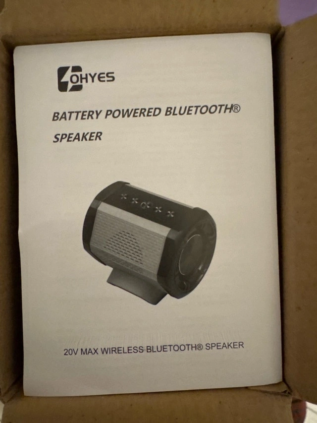 Elevate your workspace with the LOHYES Battery Powered Speaker, a rugged, high performance audio solution designed for the jobsite, the garage, or the great outdoors. Engineered to be compatible with Milwaukee 18V M18 Lithium-Ion batteries, this speaker delivers more than just music – it serves as a portable power hub for your essential devices. Key Features: Dual Functionality: Use it as a Mobile Power Bank to charge your phone or tablet via the built-in USB port while you work. Rugged Jobsite Audio: Experience loud, crystal clear stereo sound that cuts through background noise. Seamless Connectivity: Features fast Bluetooth pairing for wireless streaming, plus a USB audio input for direct playback from flash drives. Cordless Portability: Slide on any M18 battery for hours of entertainment and power without searching for an outlet. Compact & Durable: Built with a sturdy frame and easy-to-use top-mounted controls, perfect for demanding environments. Technical Specs: Compatibility: Works with Milwaukee 18V M18 batteries (Battery not included). Inputs: Bluetooth, USB Audio. Output: USB Charging Port (5V). Condition: New. Payment accepted: Cash, Cashless payment.