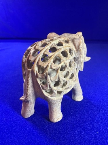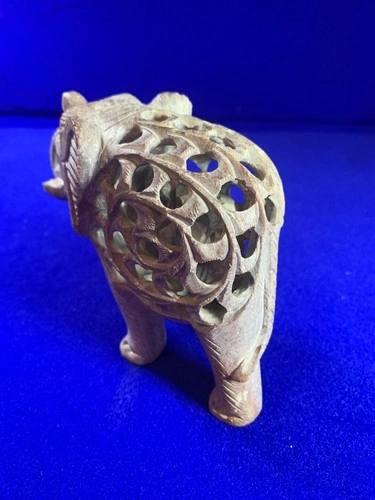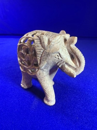 Hand-Carved Soapstone Elephant Figurine - Jali Folk Art