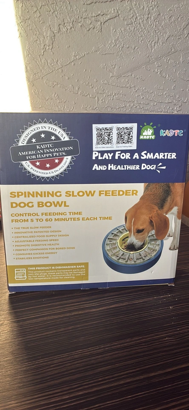 KADTC Large Size & Capacity Spinning Dog Puzzle Feeder. U.S. Brand & Design. Actually Slows Down Eating to 5-60 Minutes. Anti-Gulping Mental Enrichment for Dogs Treat & Food Dispenser Toy. Color: Blue. Animal: Dog.