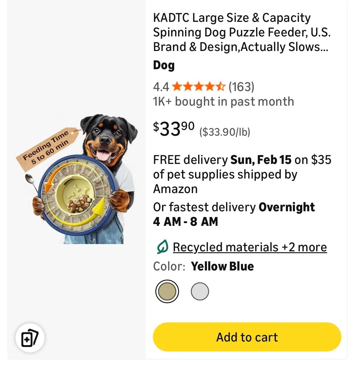 KADTC Large Size & Capacity Spinning Dog Puzzle Feeder. U.S. Brand & Design. Actually Slows Down Eating to 5-60 Minutes. Anti-Gulping Mental Enrichment for Dogs Treat & Food Dispenser Toy. Color: Blue. Animal: Dog.