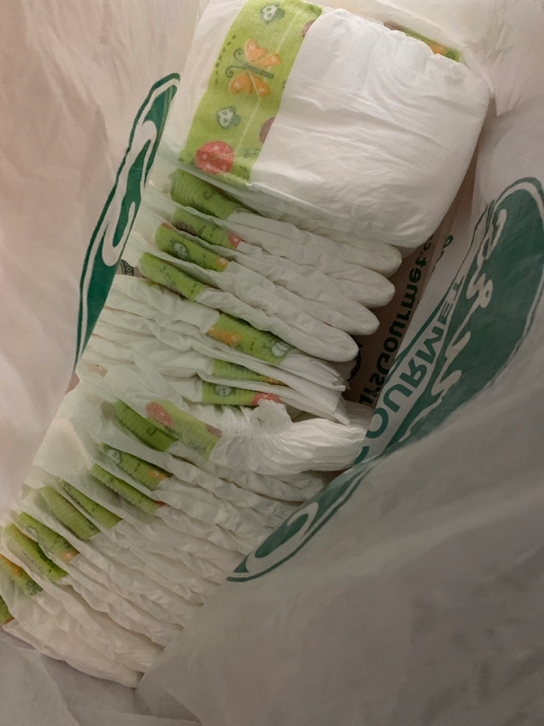24 single NB diapers - PC brand. I opened the package but baby outgrew them. They are in perfect condition.