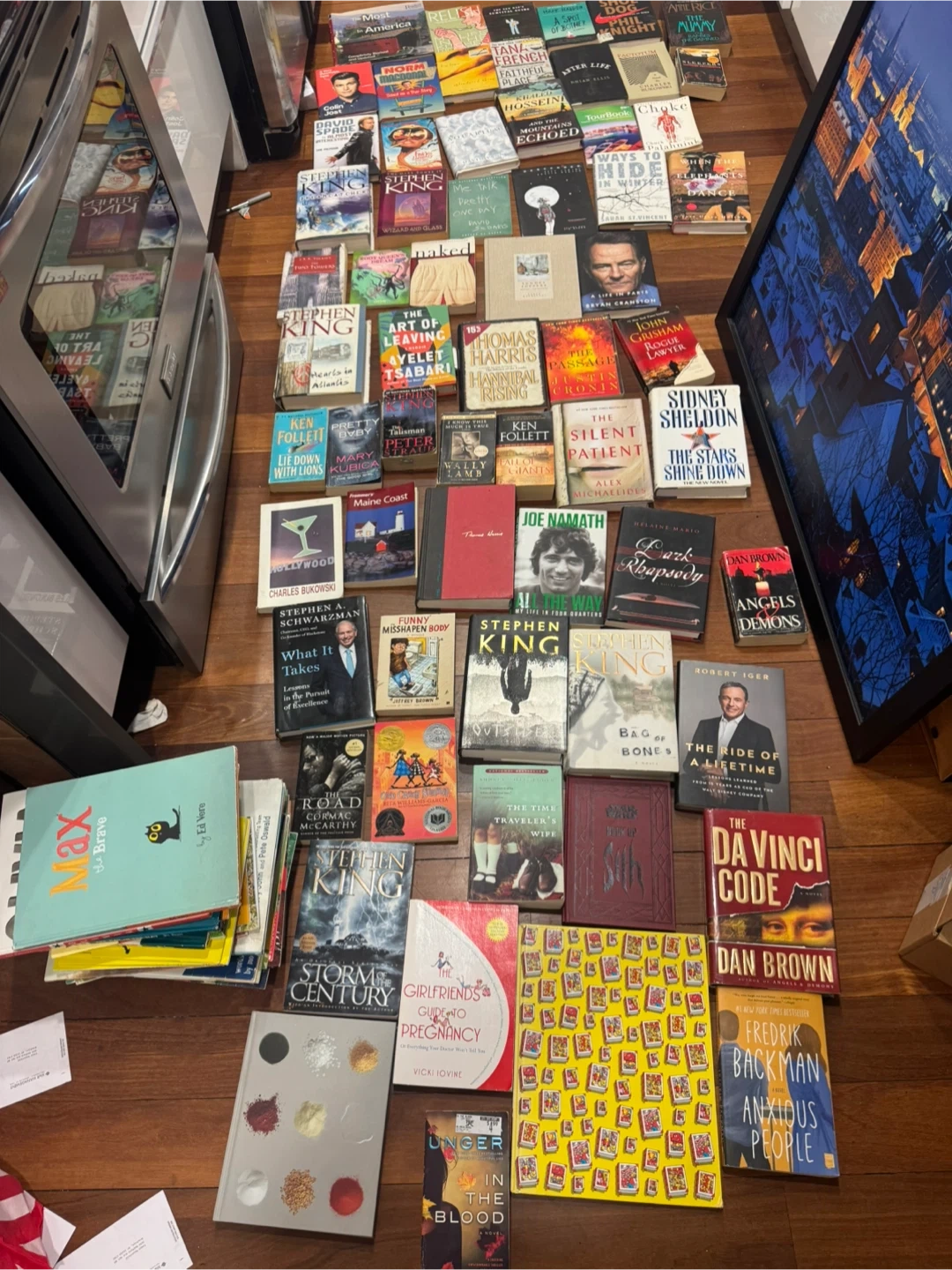 A large collection of over 40 various books from different authors and genres. Includes titles by Stephen King, Dan Brown, Ken follet alex michaelides Thomas Harris and more. Includes 4 first edition Stephen king hardcover novels . Perfect for avid readers looking to expand their library.