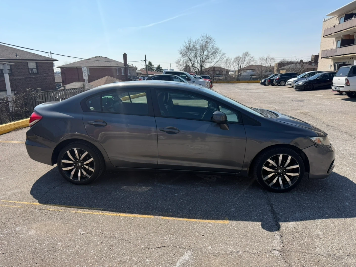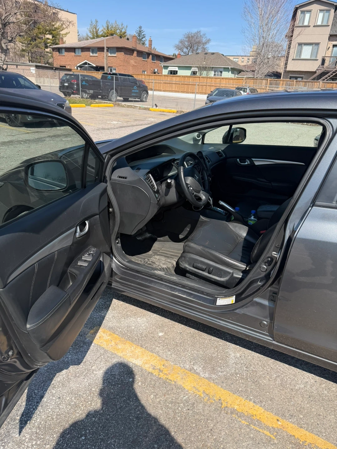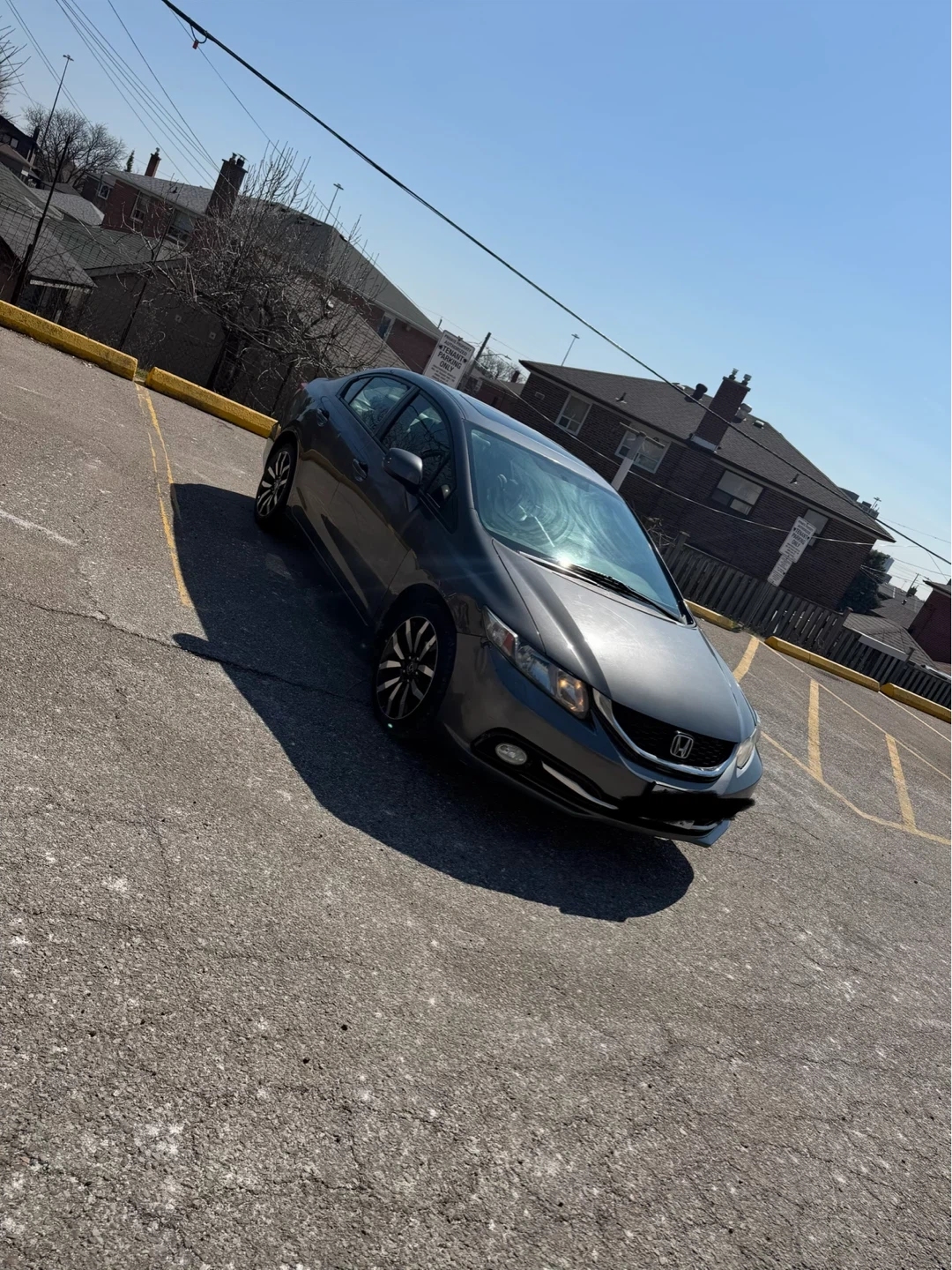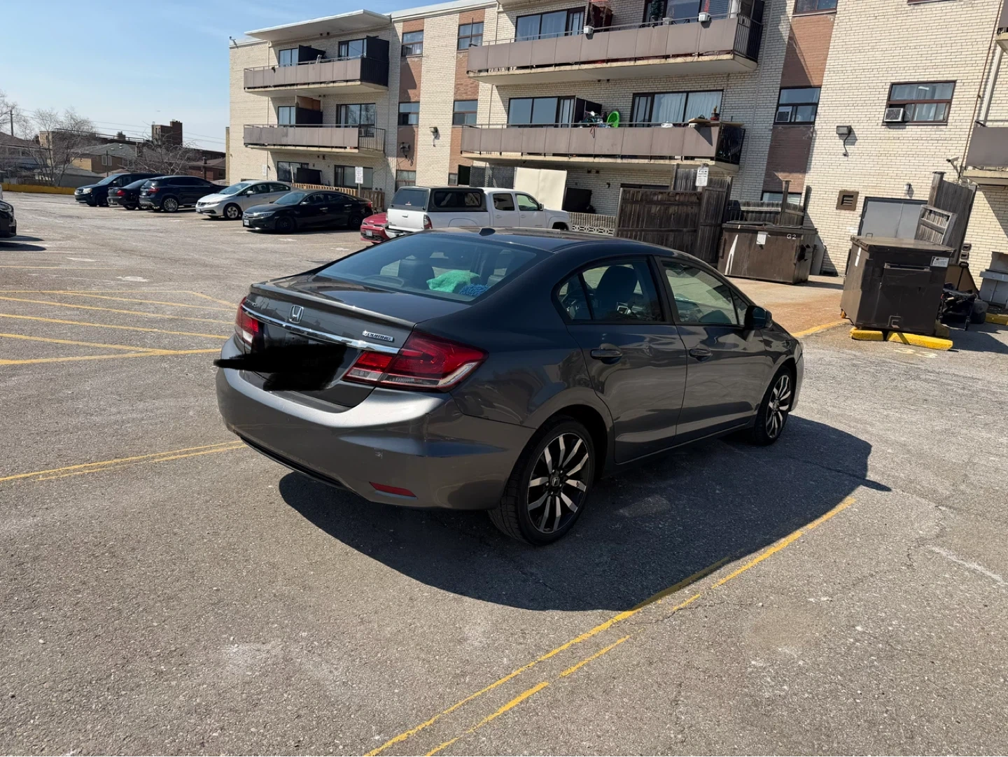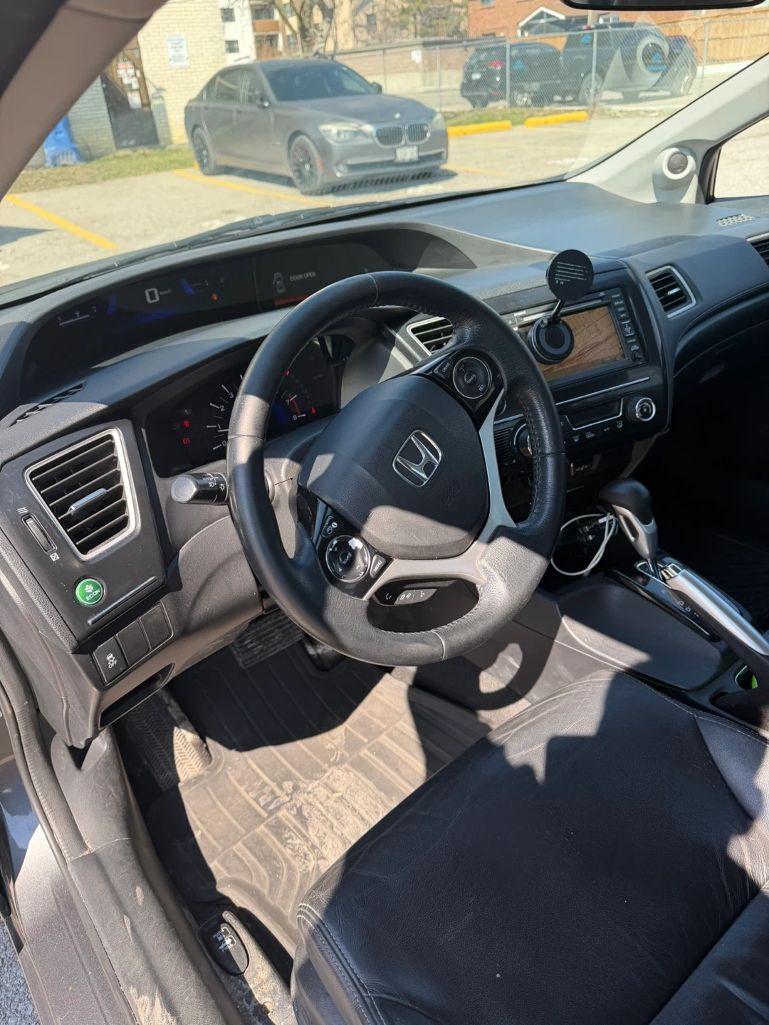 This is a dark grey Honda Civic Touring sedan. It has a comfortable black interior. This car's a reliable choice for daily commuting or road trips. It's a practical and stylish sedan.