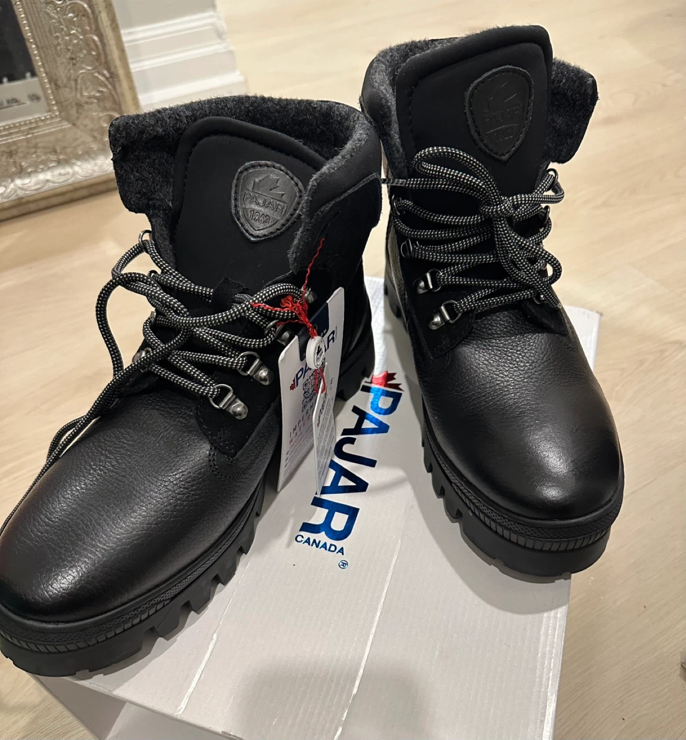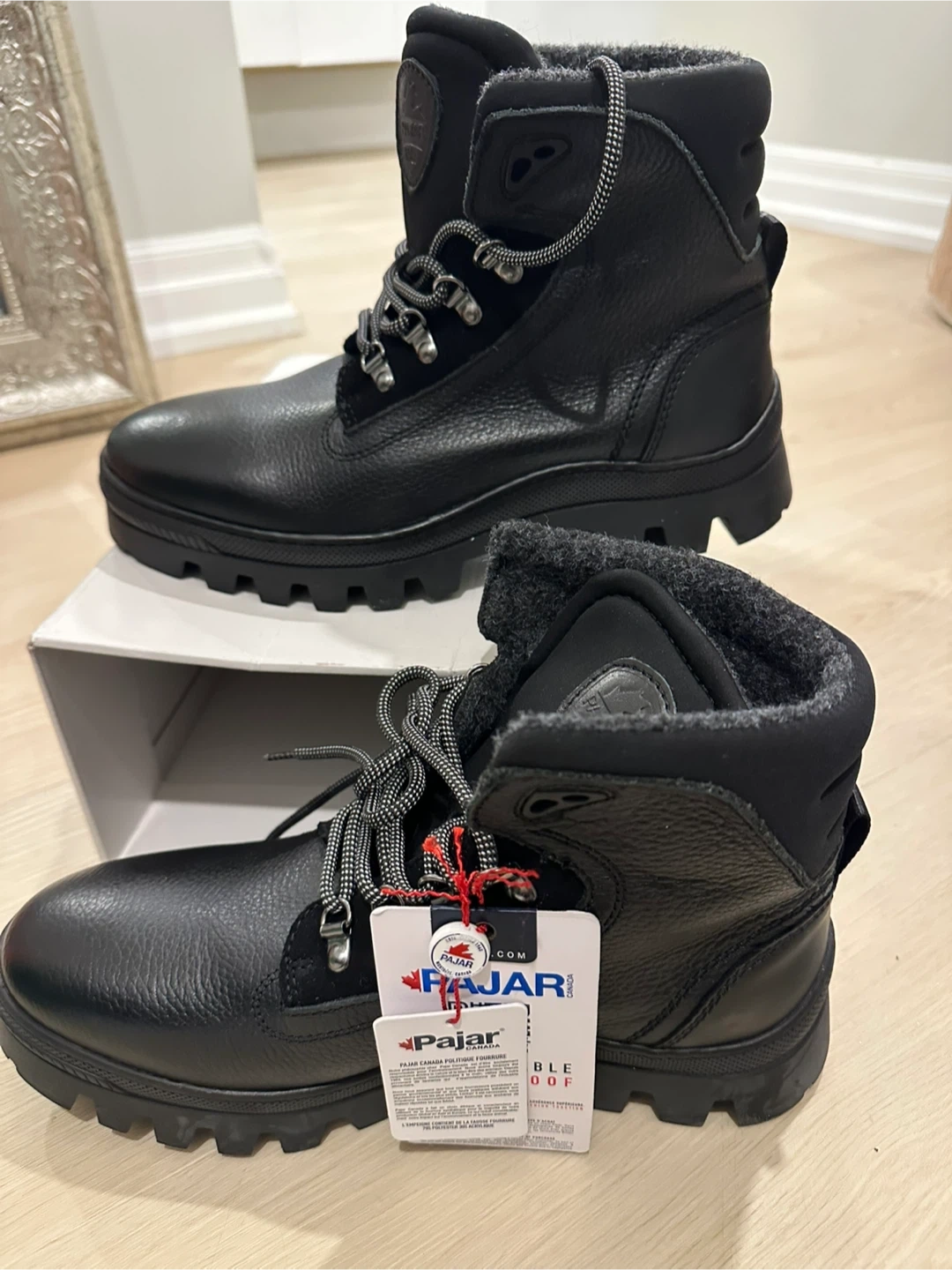 $60-Men’s Brand new Pajar winter boots in black leather. They're insulated for warmth, waterproof for up to -30 temperature