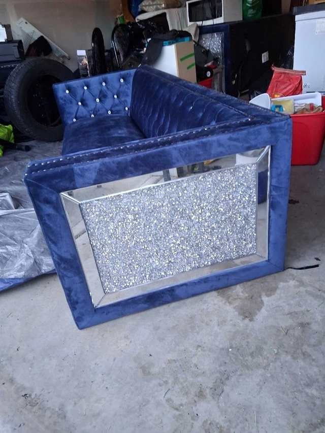 Crystal Accents: Unique crystal-inlaid side panels and button tufting.