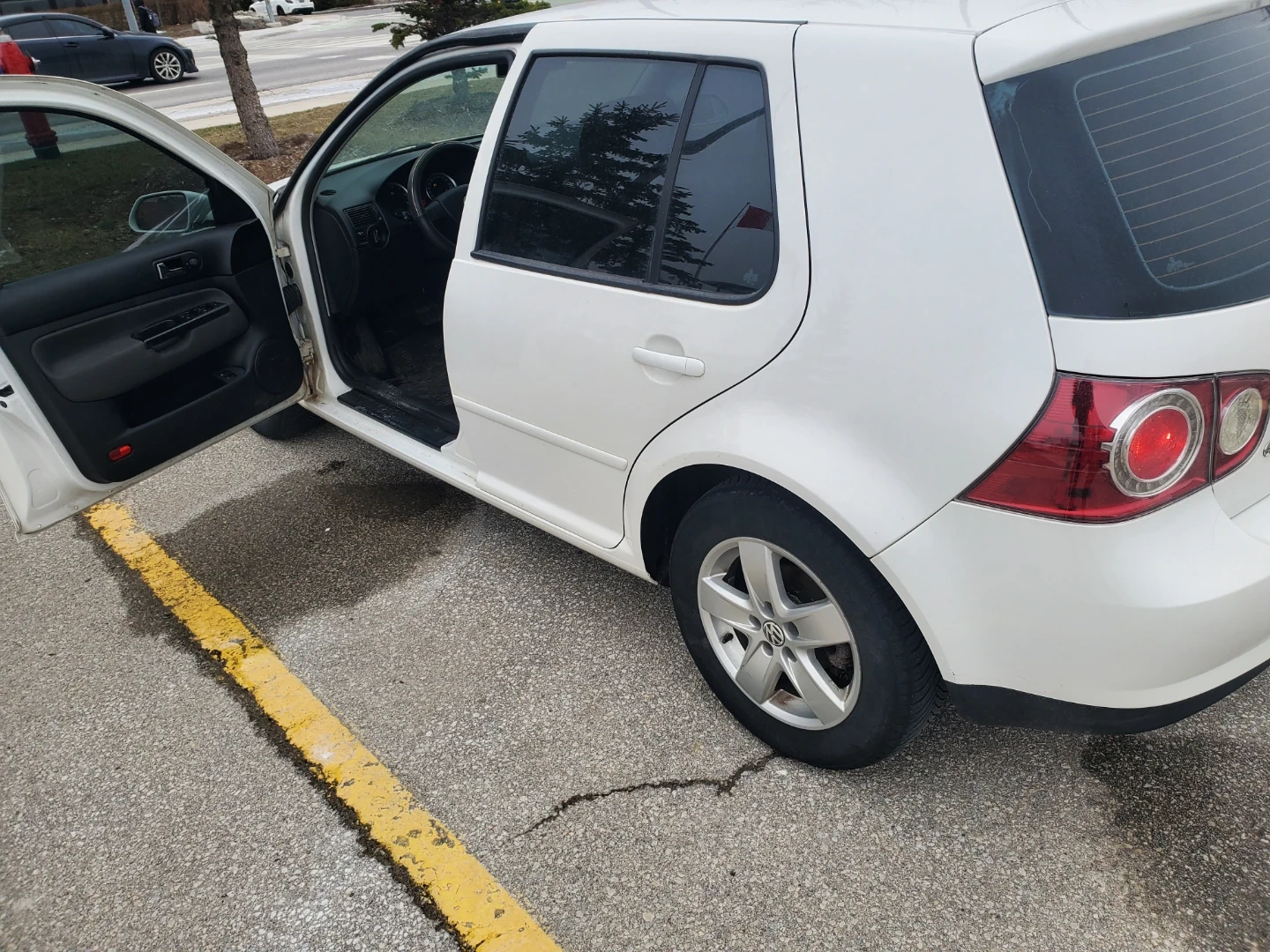 White Volkswagen Golf hatchback. Features a 2.0L engine. Interior is dark fabric seating. Great for daily commutes!only 170 km everthig working good ac working brakes great no low ballers , no accident no leaks 2 0 automatic 2008 volswagen city