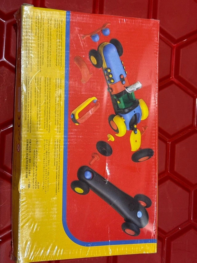 I'm offering a brand new Mic-o-Mic Roadster 089.016, a classic German construction toy that encourages creativity and fine motor skills through building a colourful vintage race car. This set is perfect for collectors or as a unique gift for children and adults alike! Because it’s still sealed, this toy would make a cool gift! Each piece clicks together for a firm hold, ensuring the model stays intact during play and display.