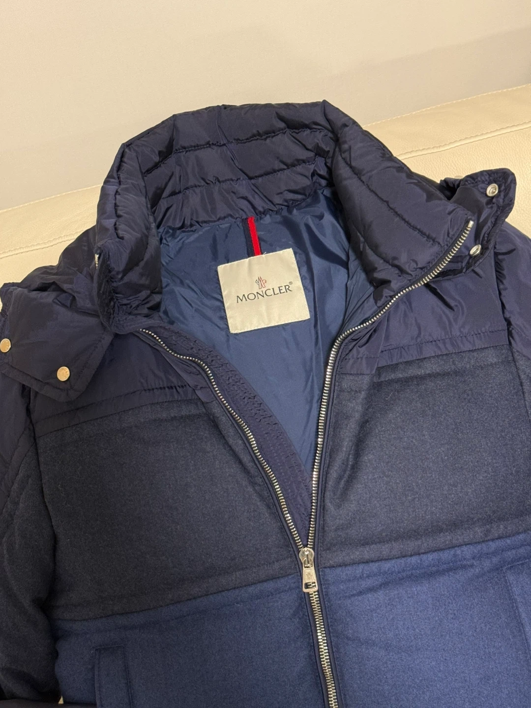 Selling a 100% authentic Moncler ROUVE Giubbotto. This is a premium men’s collection piece, known for its sophisticated tri-color gradient and mixed-material design.