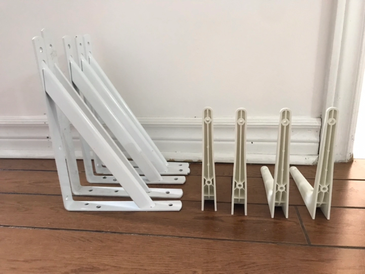 Set of 5 metal White Shelf Brackets & 4 plastic brackets