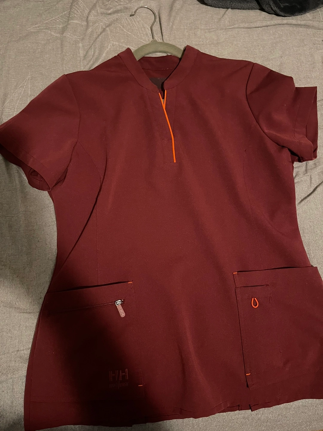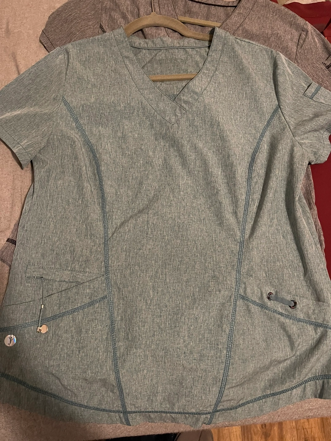 Scrub top. V-neck, short sleeves, and pockets. Excellent condition. Bought them for $40 each. I super love them but it doesn't fit me anymore.