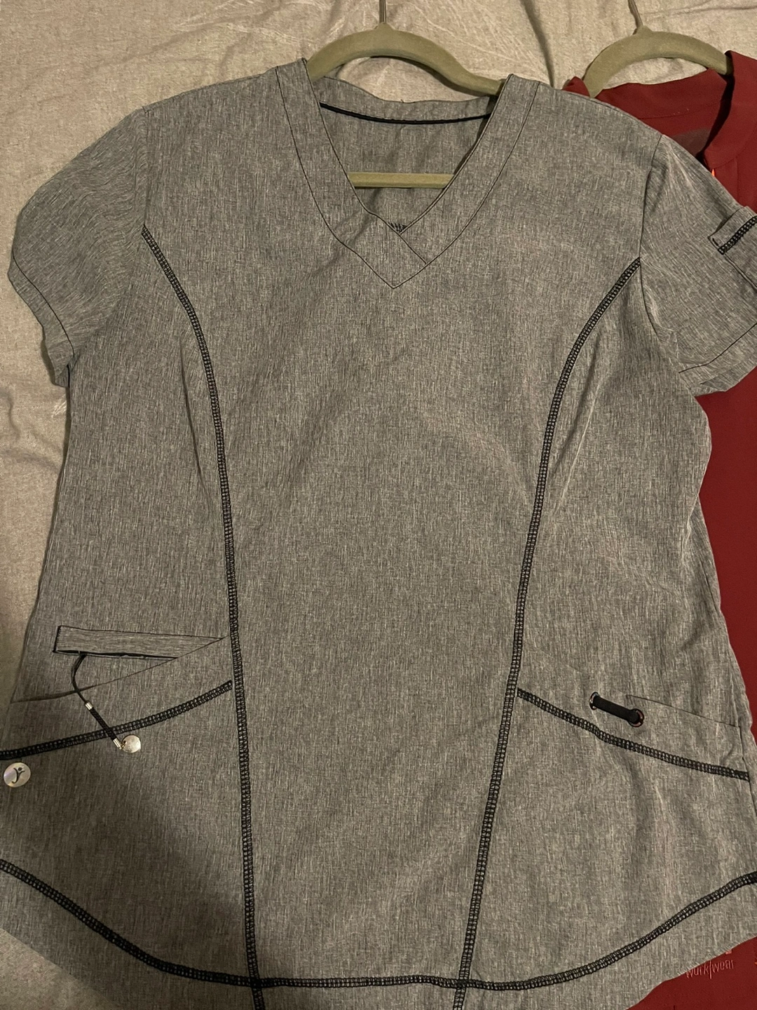 Scrub top. V-neck, short sleeves, and pockets. Excellent condition. Bought them for $40 each. I super love them but it doesn't fit me anymore.