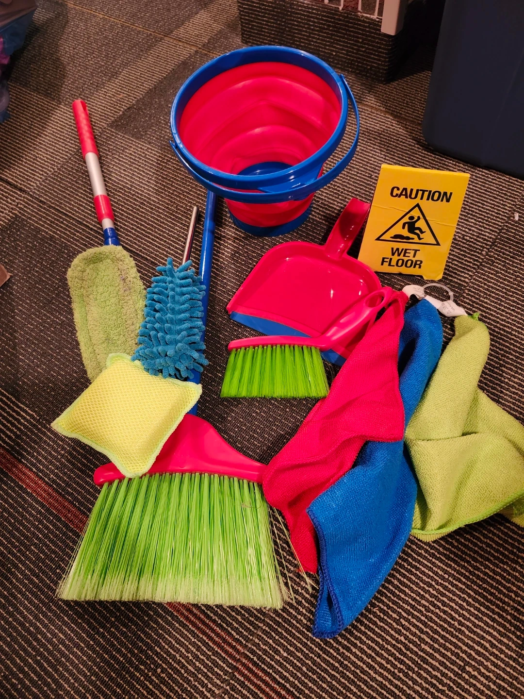 Play cleaning set gently used, the green duster handle has tape but still works well.