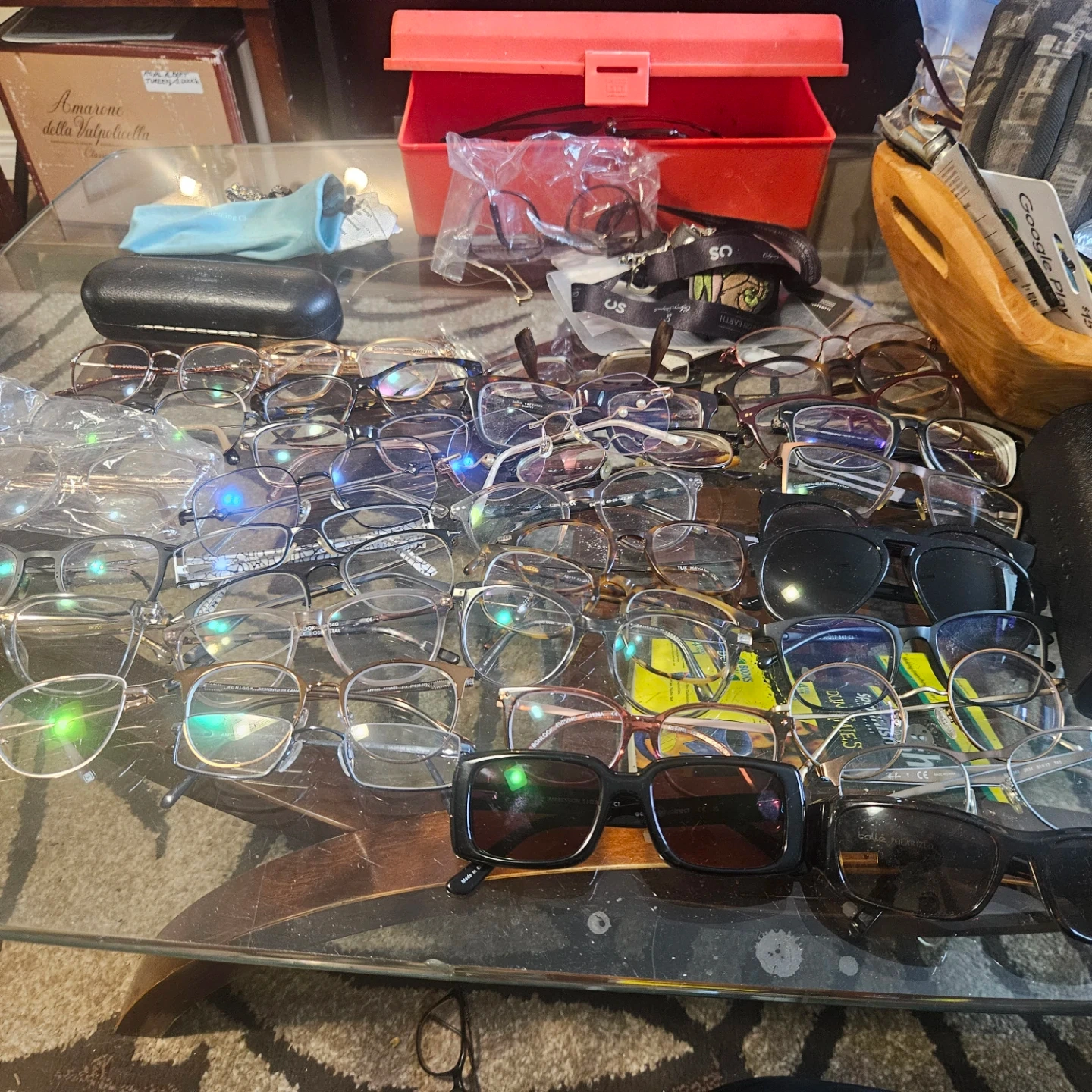 Woman's and mens collection of eyeglasses and sunglasses. Includes various styles and frames. Some come with cases. 20 -50 $ depending on the make and model.
