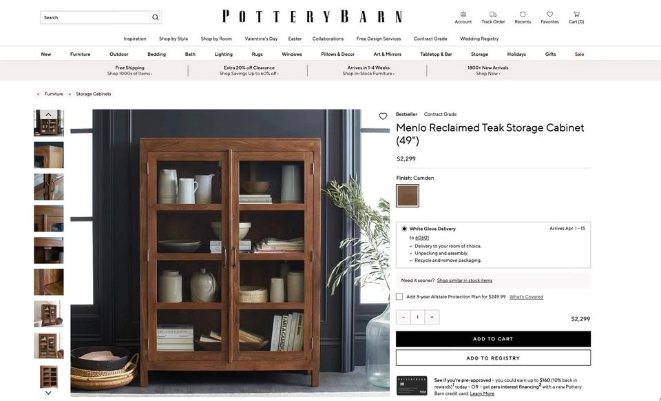 ‼️MUST GO BY 3/31‼️50% OFF‼️ *NEW* POTTERYBARN MENLO CABINET