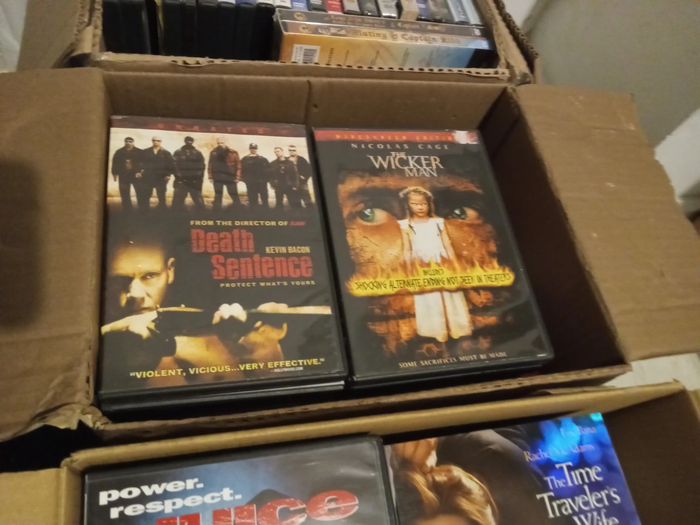 3 boxes of movies with 152 movies.