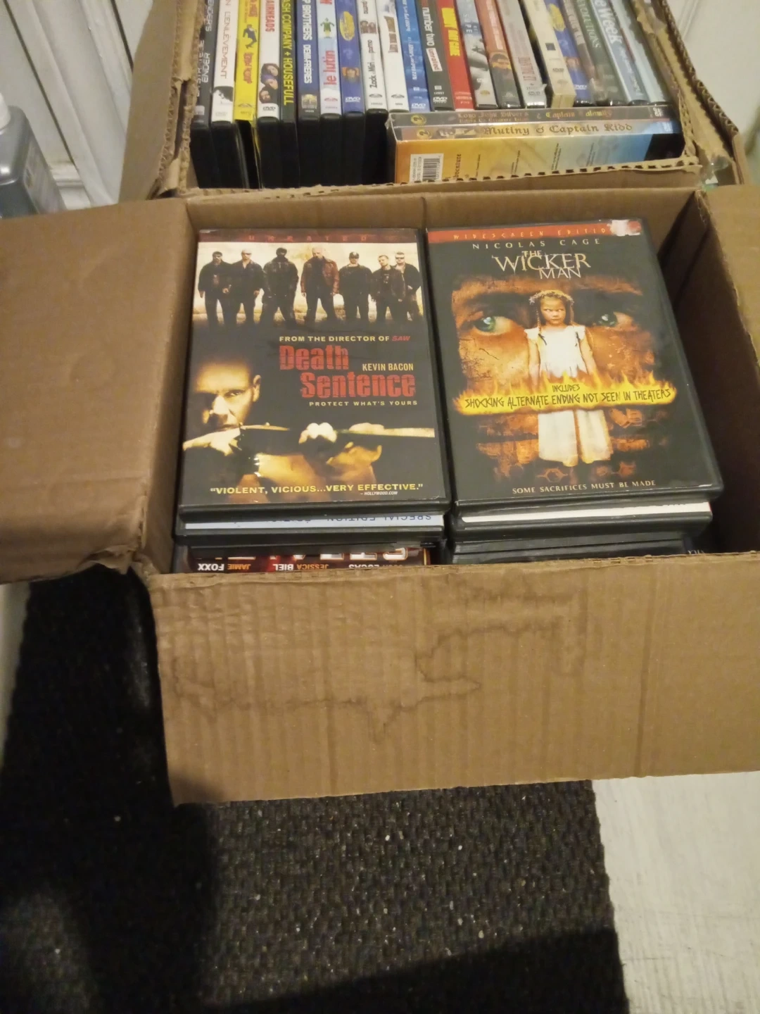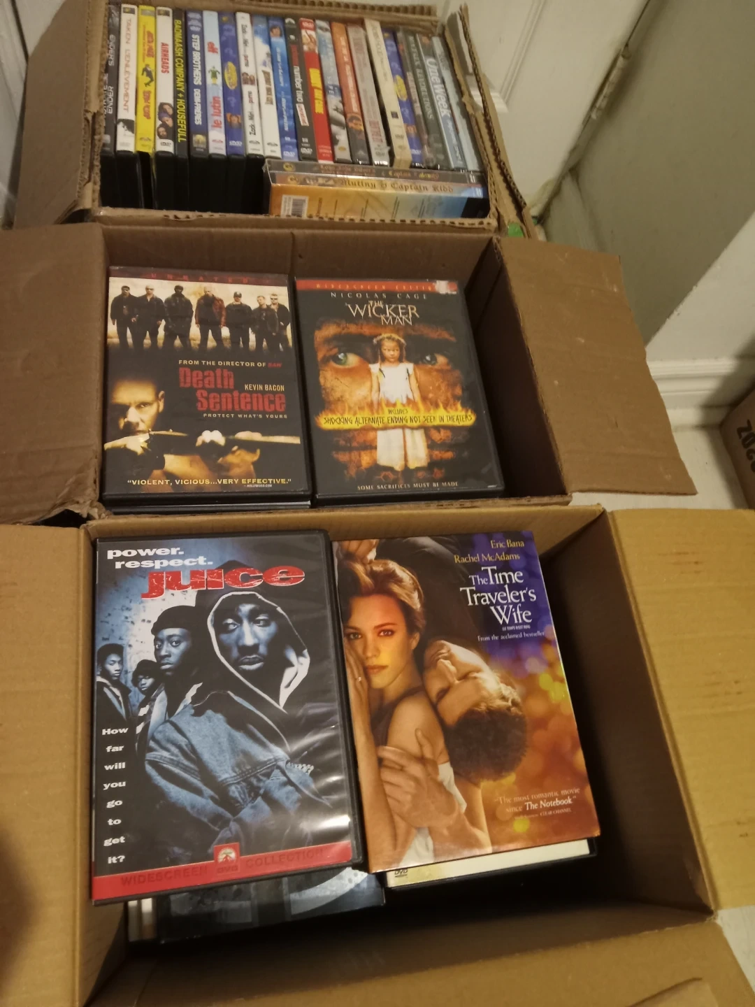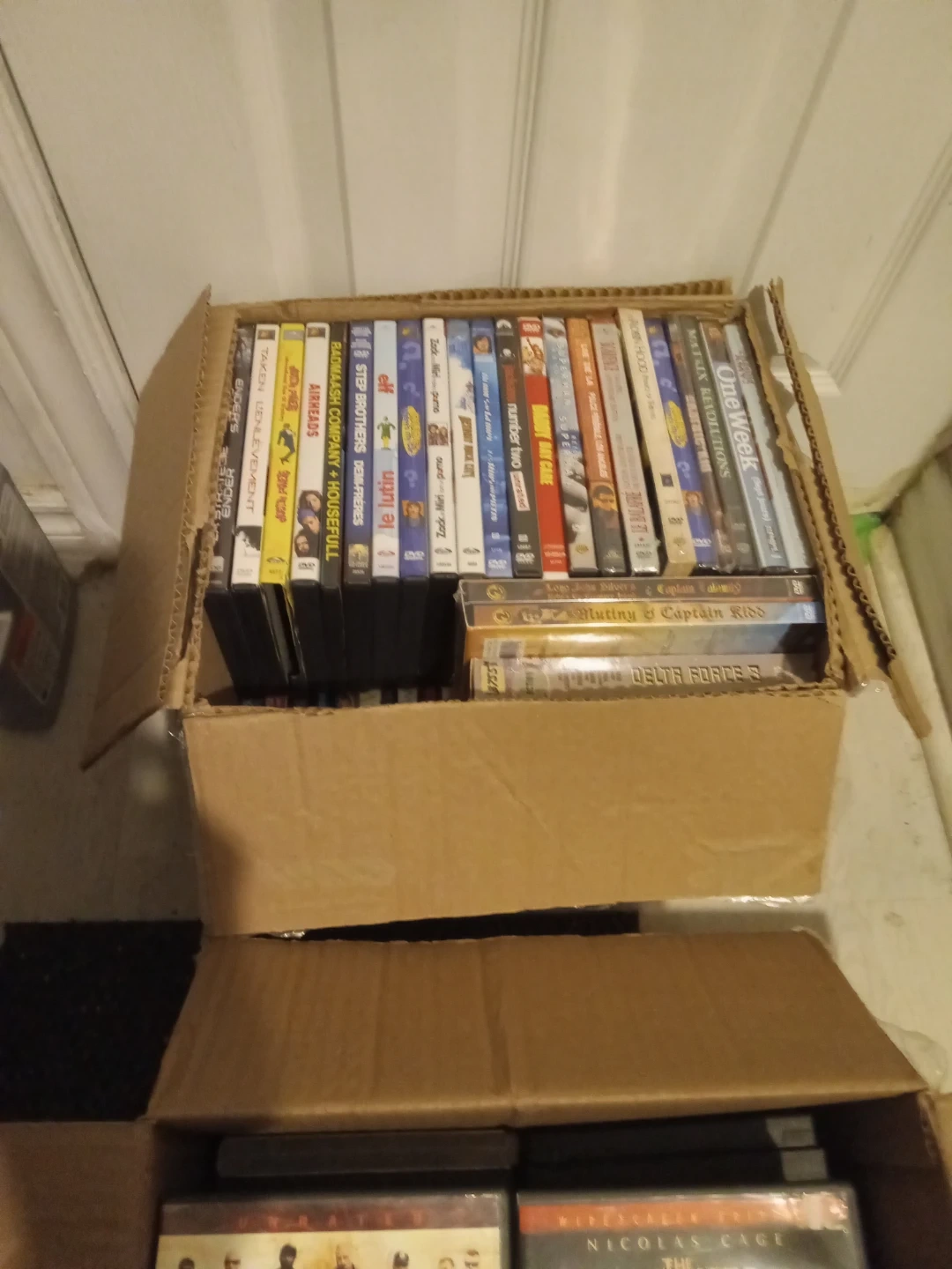 3 boxes of movies with 152 movies.
