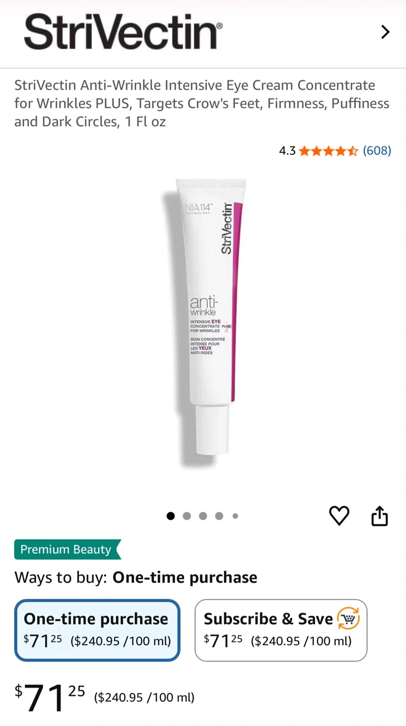 Selling a tube of StriVectin Anti-Wrinkle Intensive Eye Cream Concentrate for Wrinkles PLUS. It targets crow's feet, firms, and reduces puffiness and dark circles. The production date is 2025 July 23.