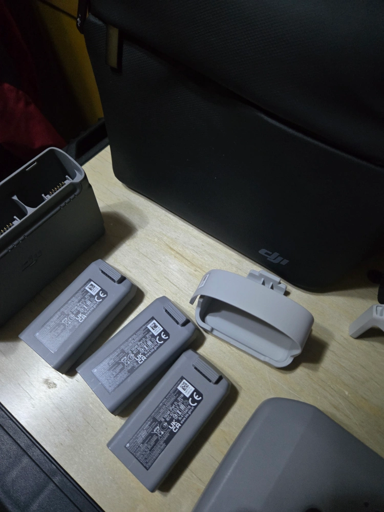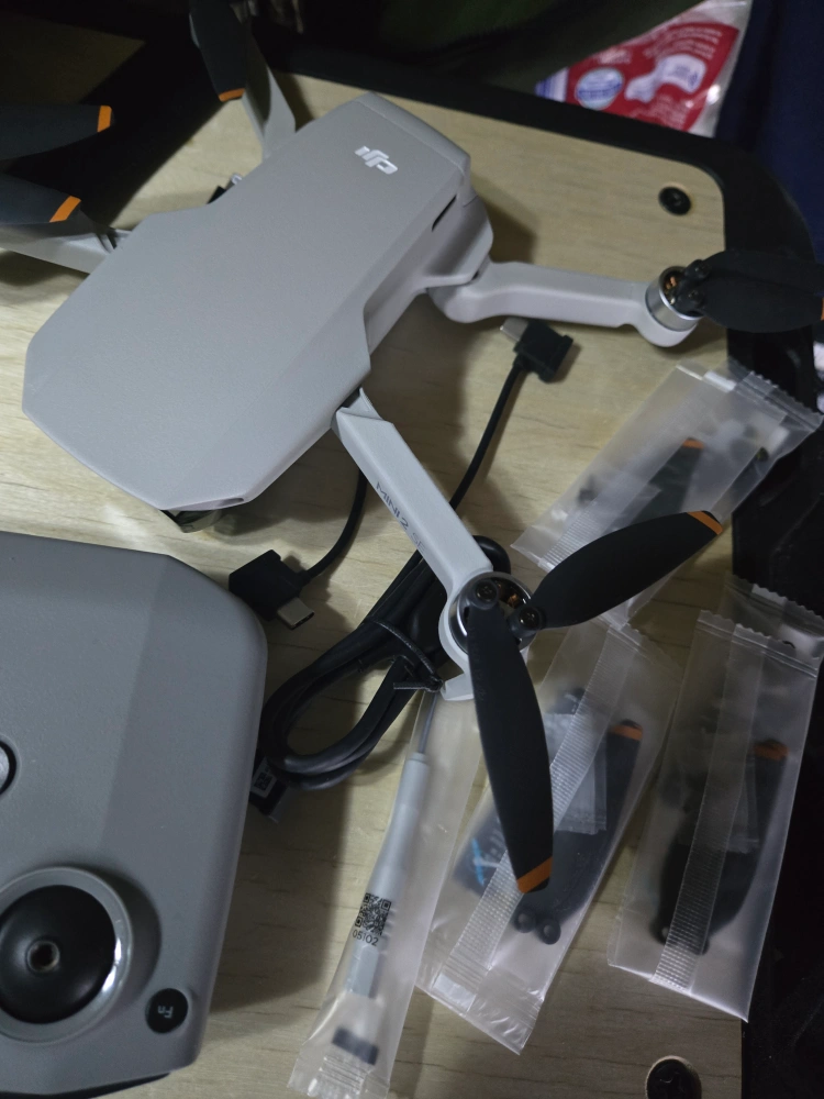 This is a DJI Mini 2 SE drone with its controller and bag and several accessories. including extra propellers and charger and 3 batteries. It's a great drone for capturing aerial photos and videos. It's compact and easy to fly! used only a few times since purchase.