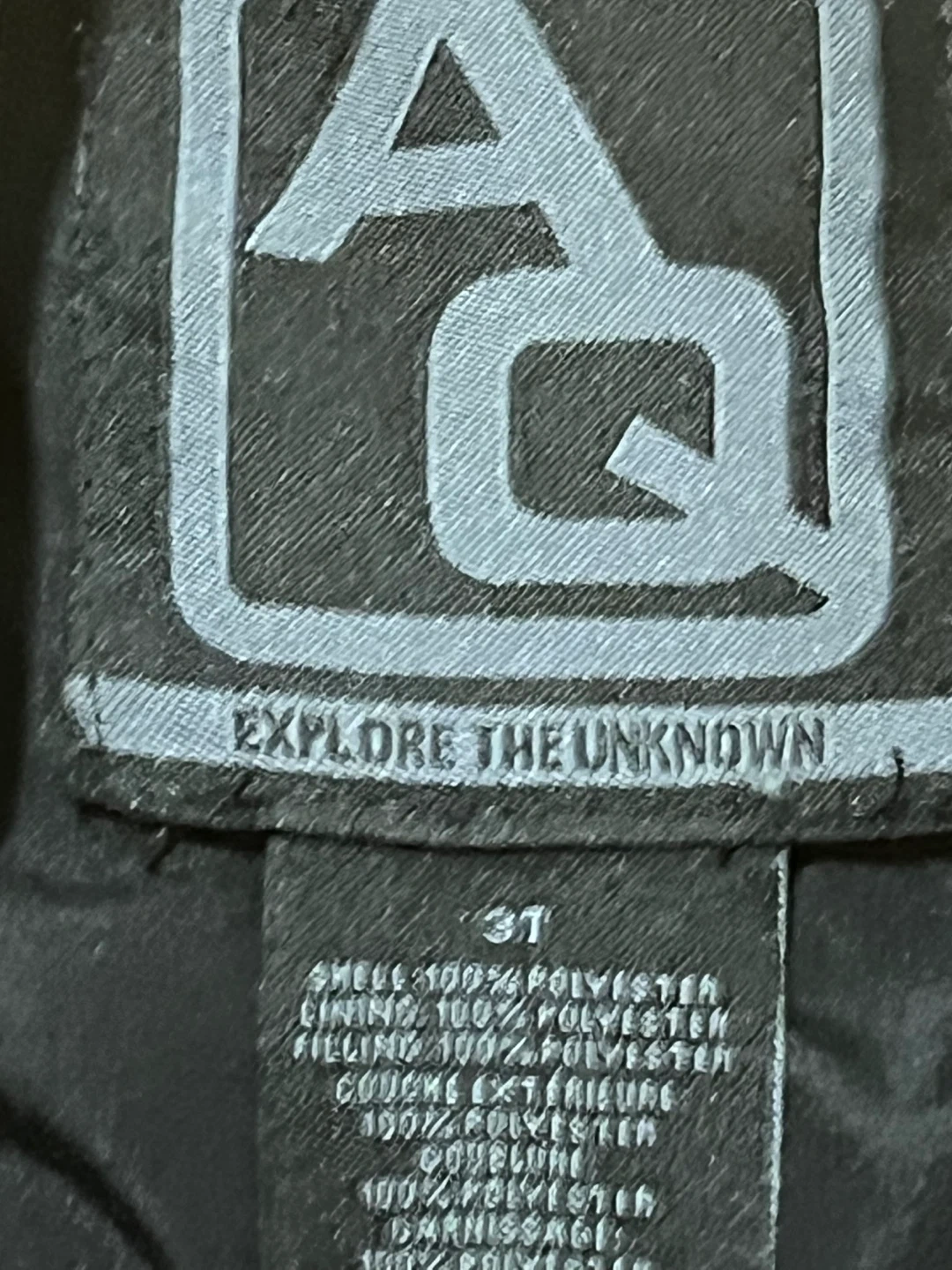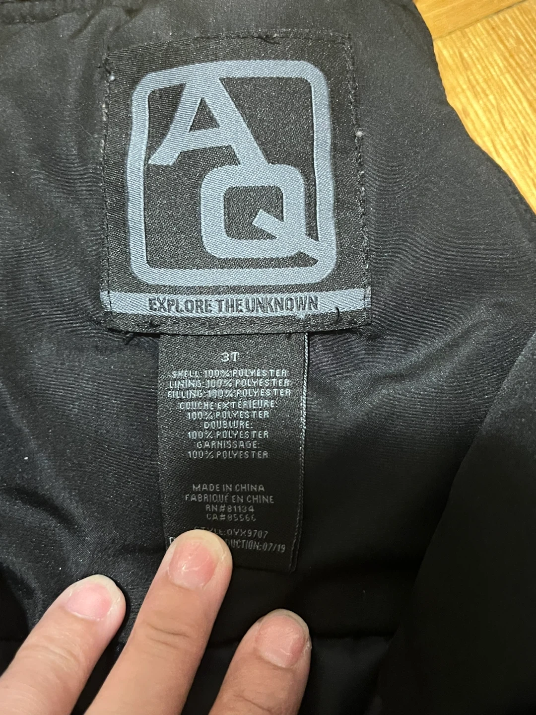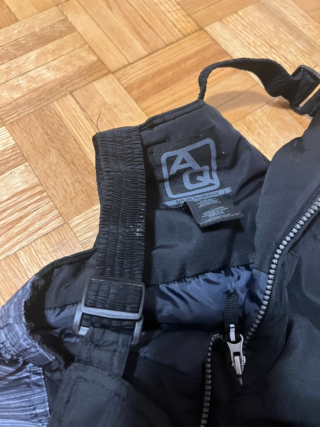 a pair of snow pants from AQ Explore the Unknown in size 3T. They're black with gray stripes on the sides. #cleanout