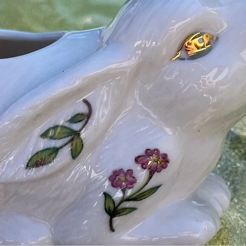 Grace's Teaware Porcelain Bunny Rabbit Creamer. Approx 4 1/4" L x 2" T x 1 7/8" W. In excellent like new condition. Features ladybugs and flowers with gold accents on the eyes and handle. No chips, scratches, or fading.