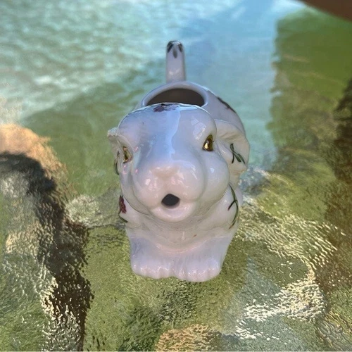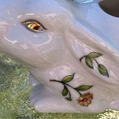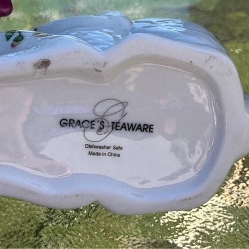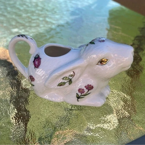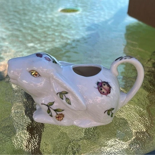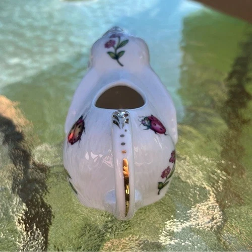 Grace's Teaware Porcelain Bunny Rabbit Creamer. Approx 4 1/4" L x 2" T x 1 7/8" W. In excellent like new condition. Features ladybugs and flowers with gold accents on the eyes and handle. No chips, scratches, or fading.