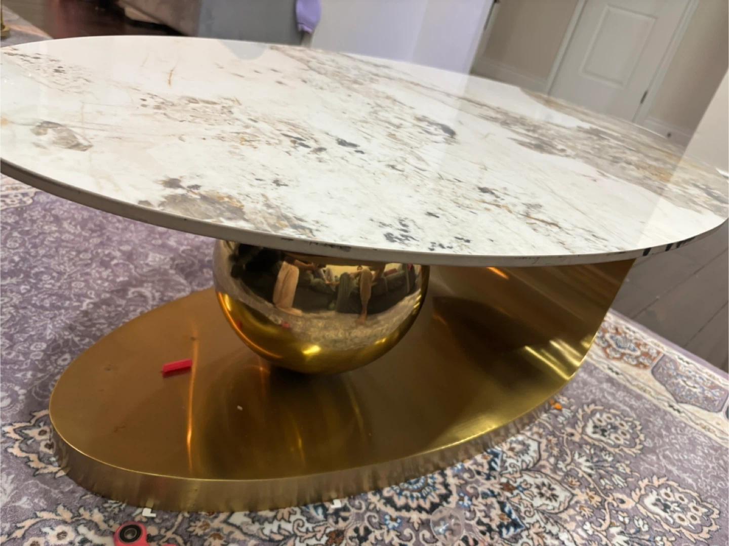 Modern Oval Coffee Table with Marble Top and Gold Base