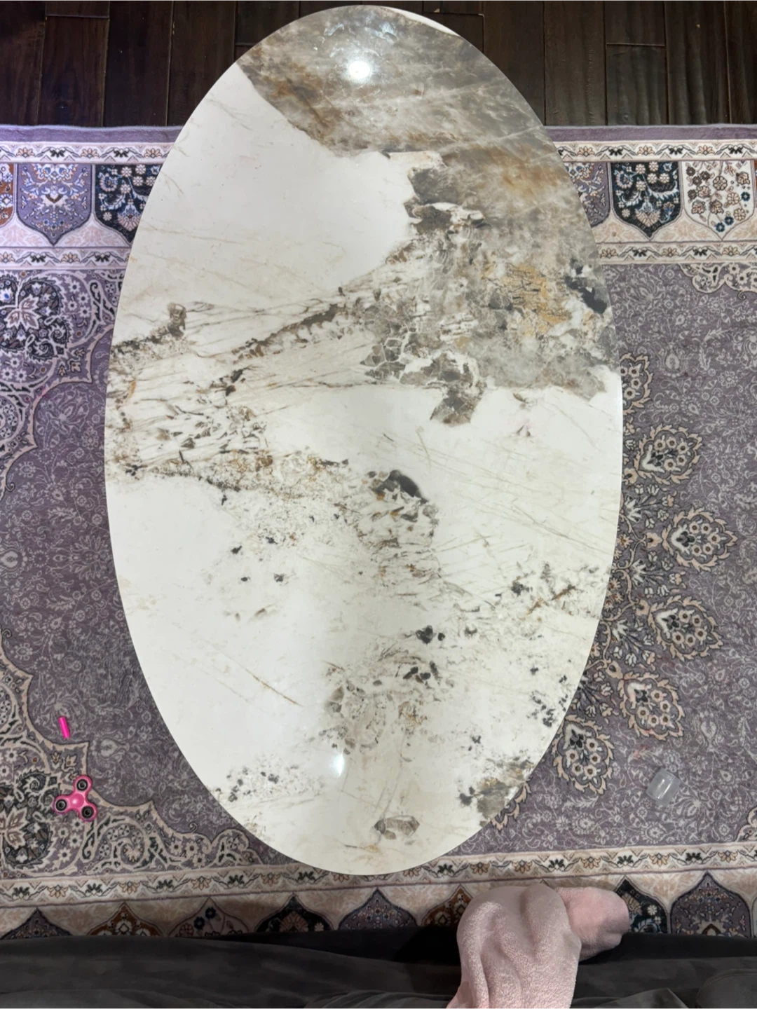 Modern Oval Coffee Table with Marble Top and Gold Base