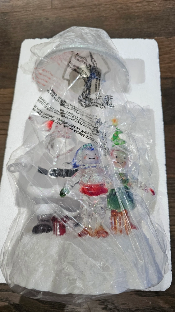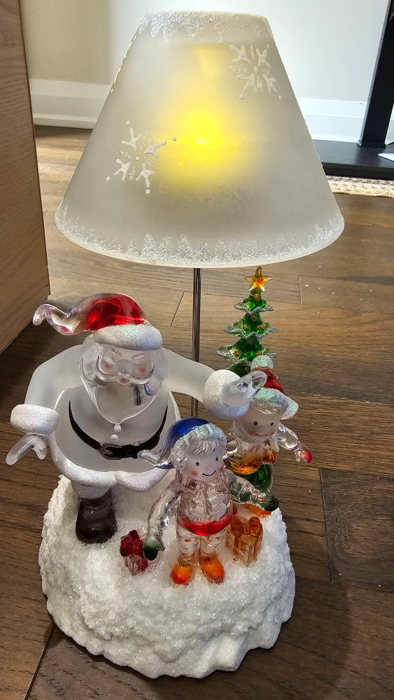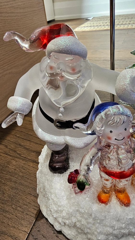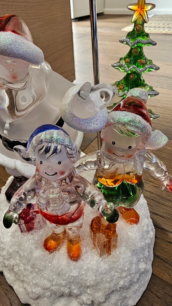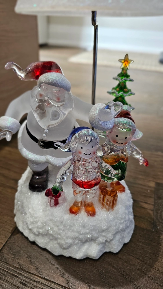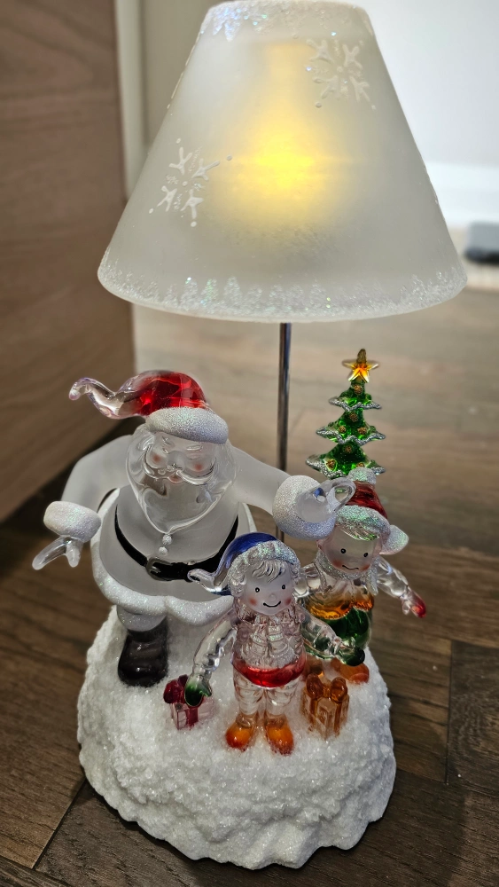Add a festive touch to your home with this charming Christmas tabletop decoration! It features Santa Claus with two elves and a Christmas tree, all illuminated by a soft light. Perfect for adding a warm and cheerful glow to any room during the holiday season