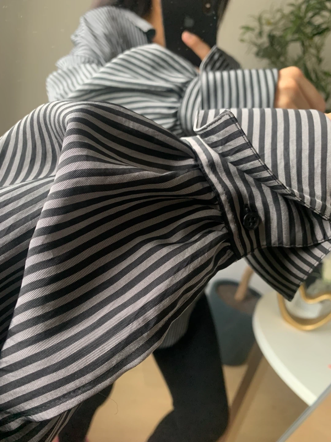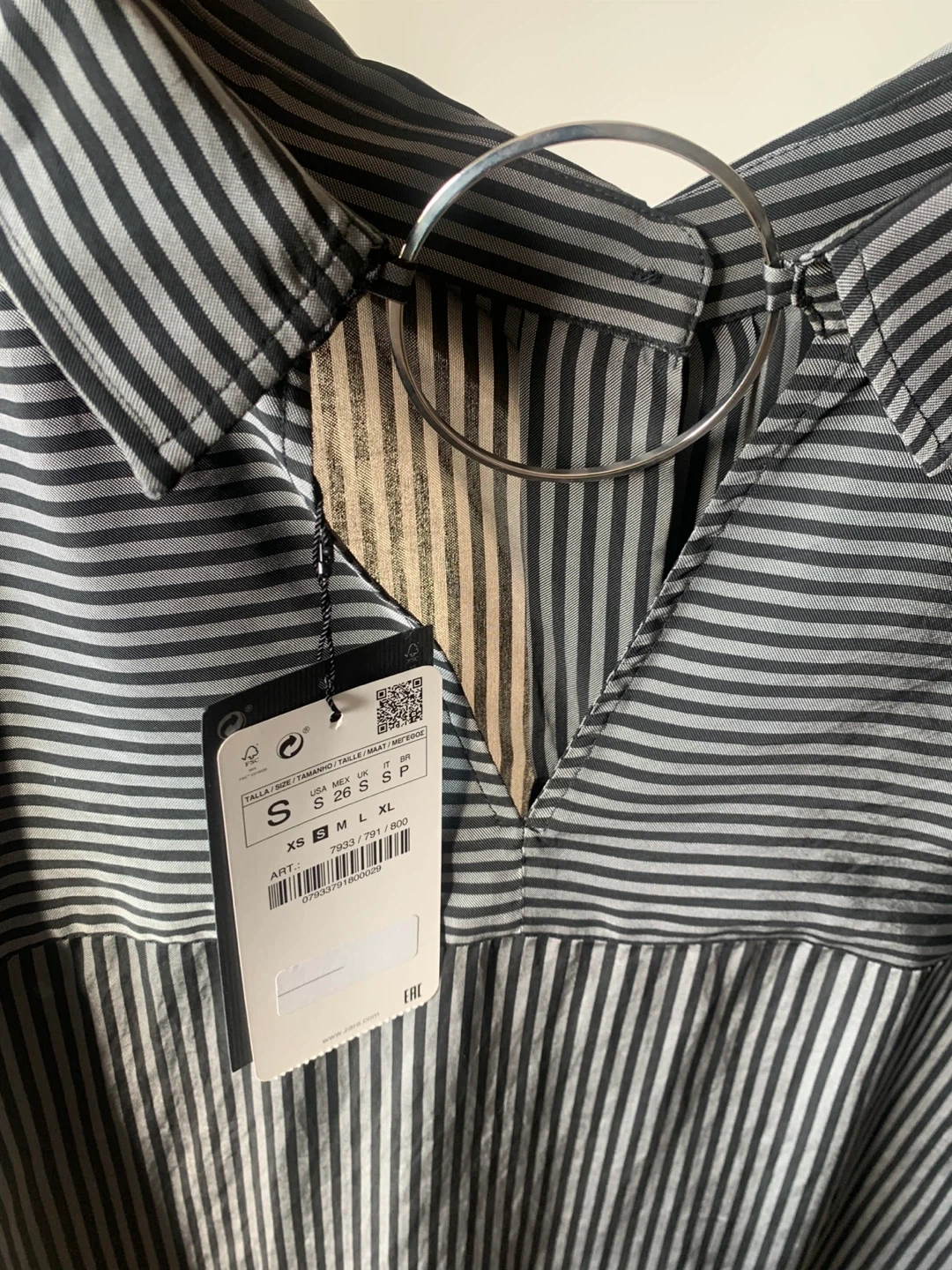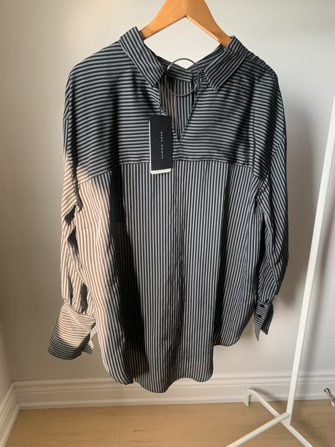 ZARA Oversize Striped Shirt Black Grey Size S New With Tags