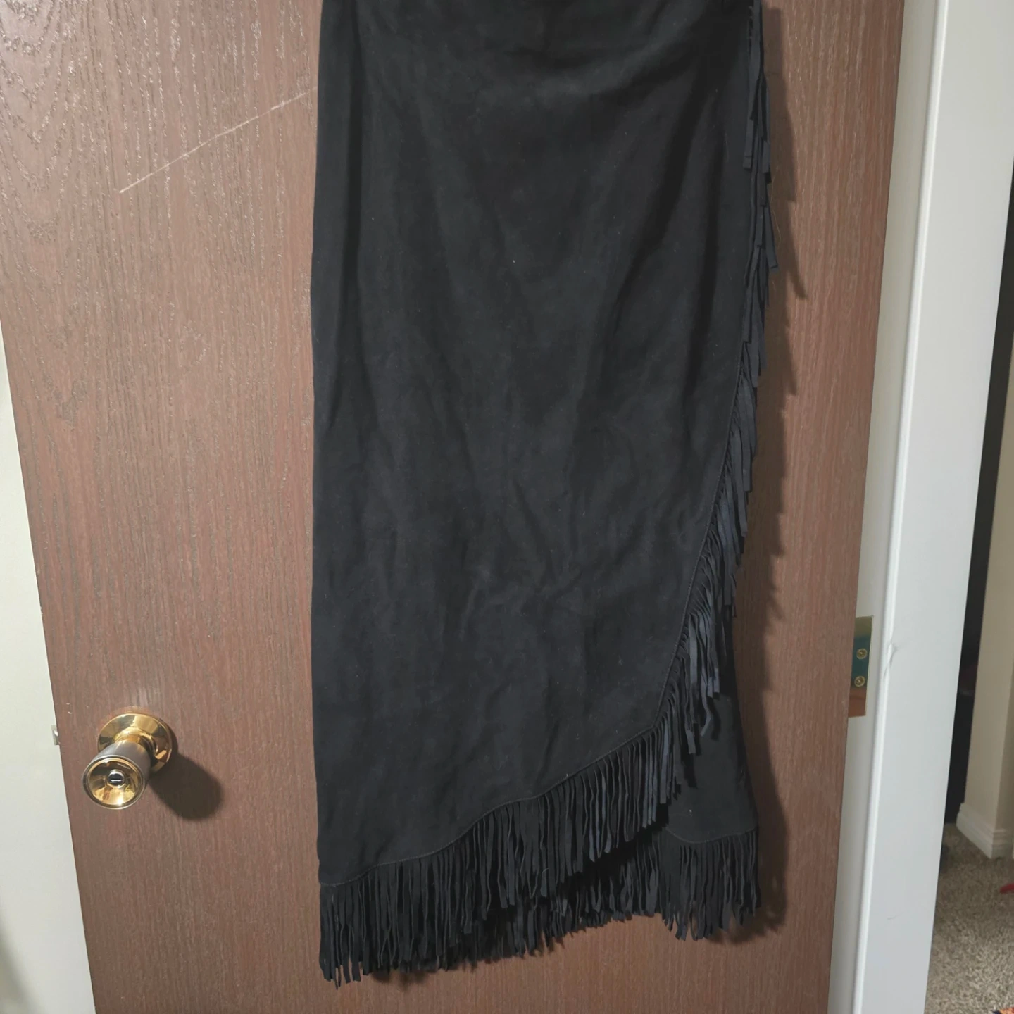 Irka Black Suede Fringe Skirt - Size 10