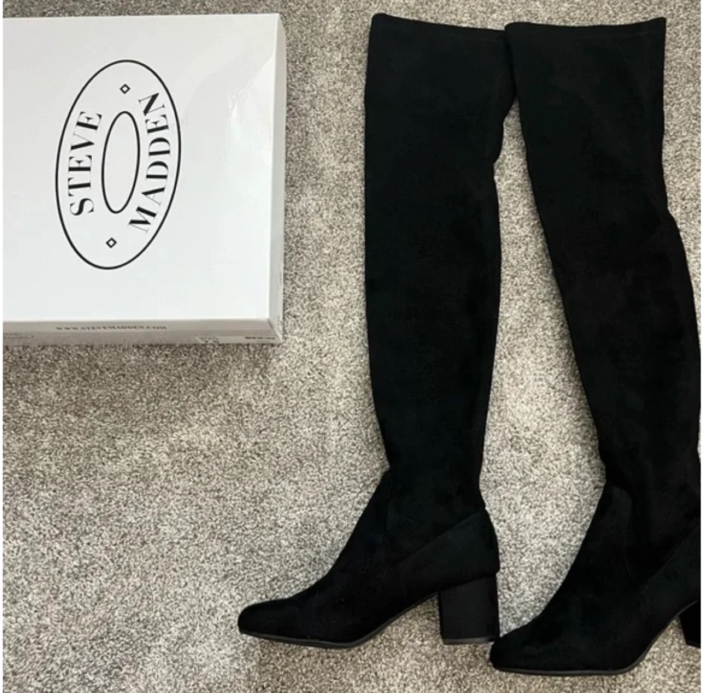 Selling a pair of Steve Madden Isaac thigh high boots in black! Brand new in box and never worn beyond a brief try-on indoors.