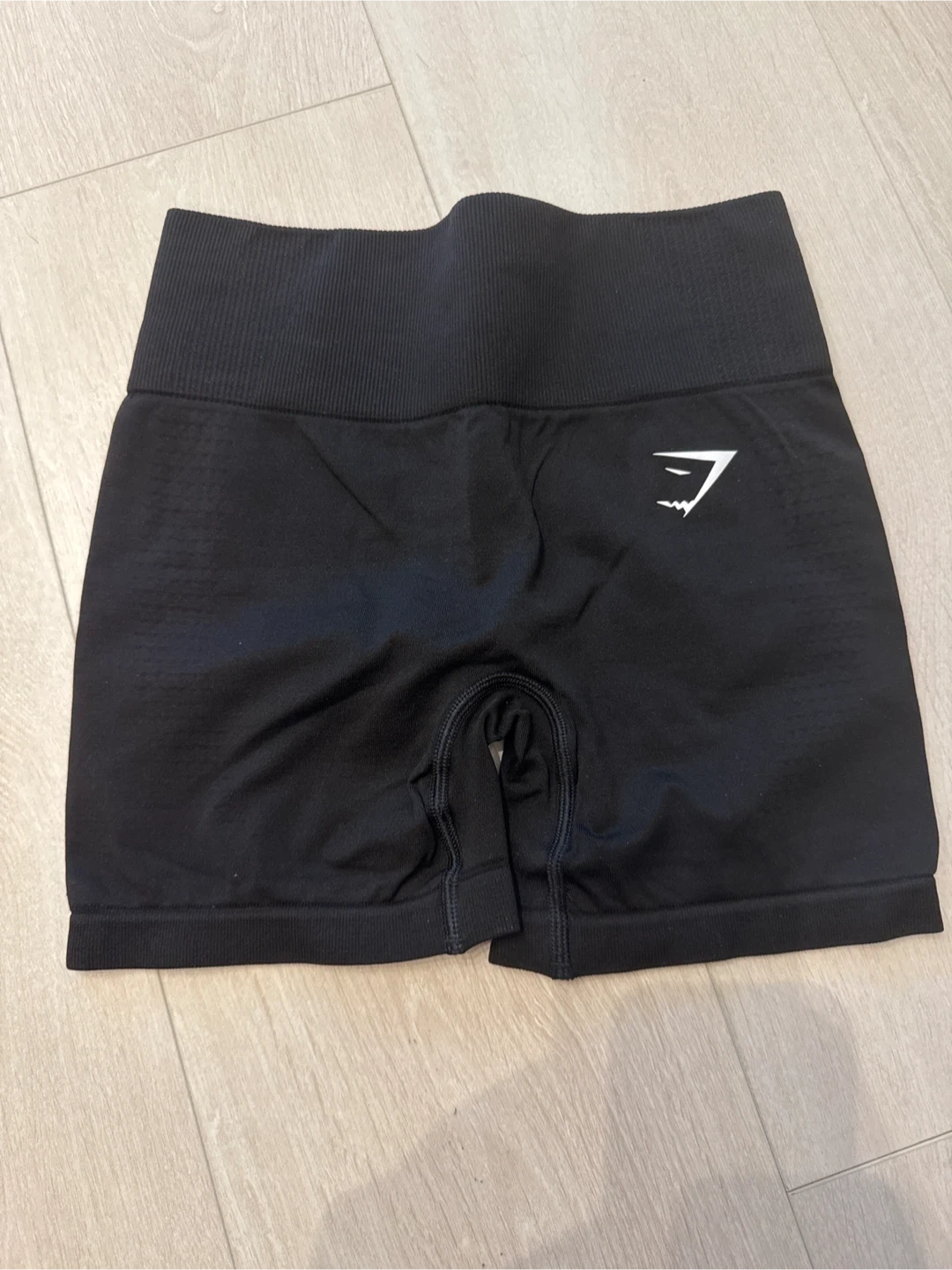 Totally new Black seamless shorts from Gymshark. These shorts feature a ruched detail at the back and a high-waisted fit. Material is stretchy and breathable.