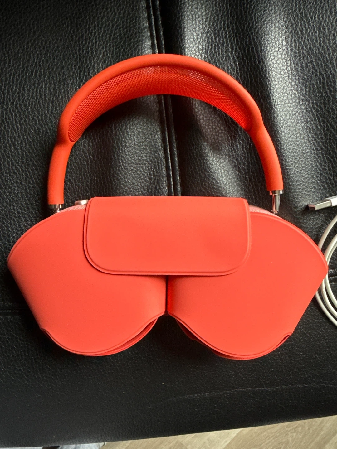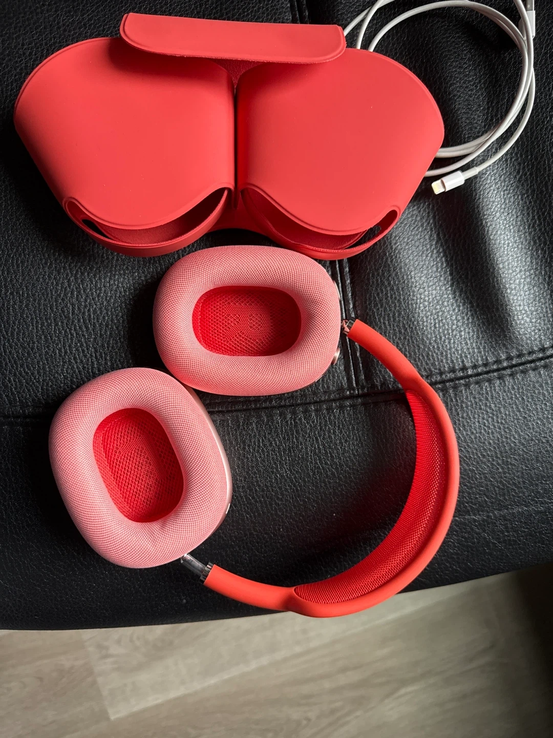 Apple AirPods Max over-ear headphones in red. Includes Smart Case and USB-C charging cable. Top-quality audio and active noise cancellation. These are genuine Apple AirPods and I can share the invoice as well.