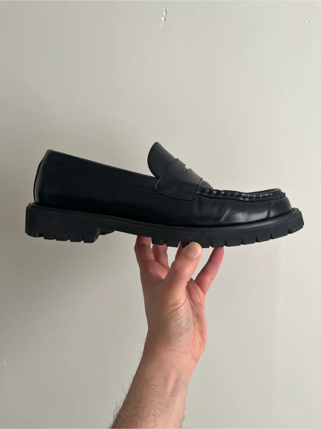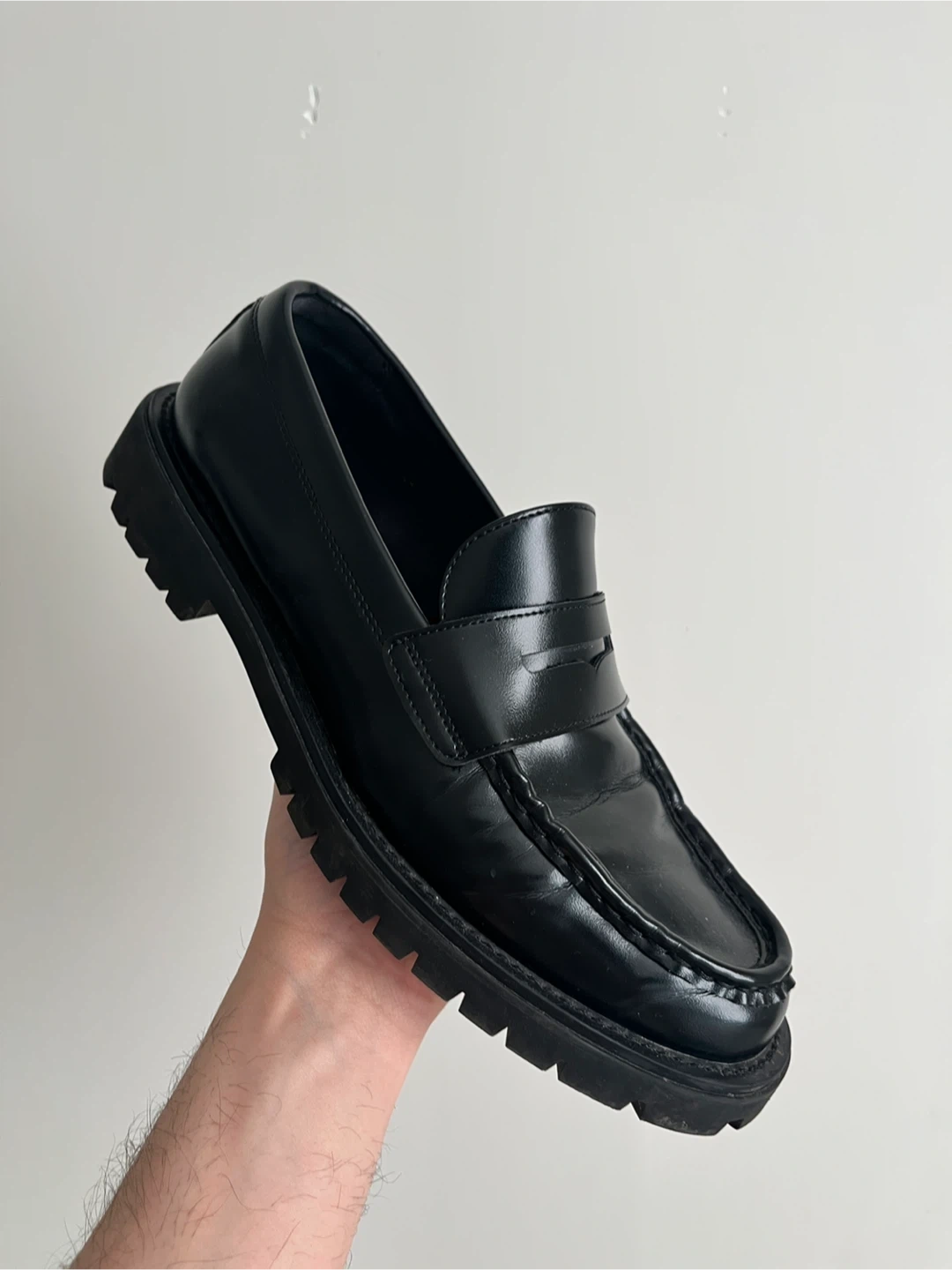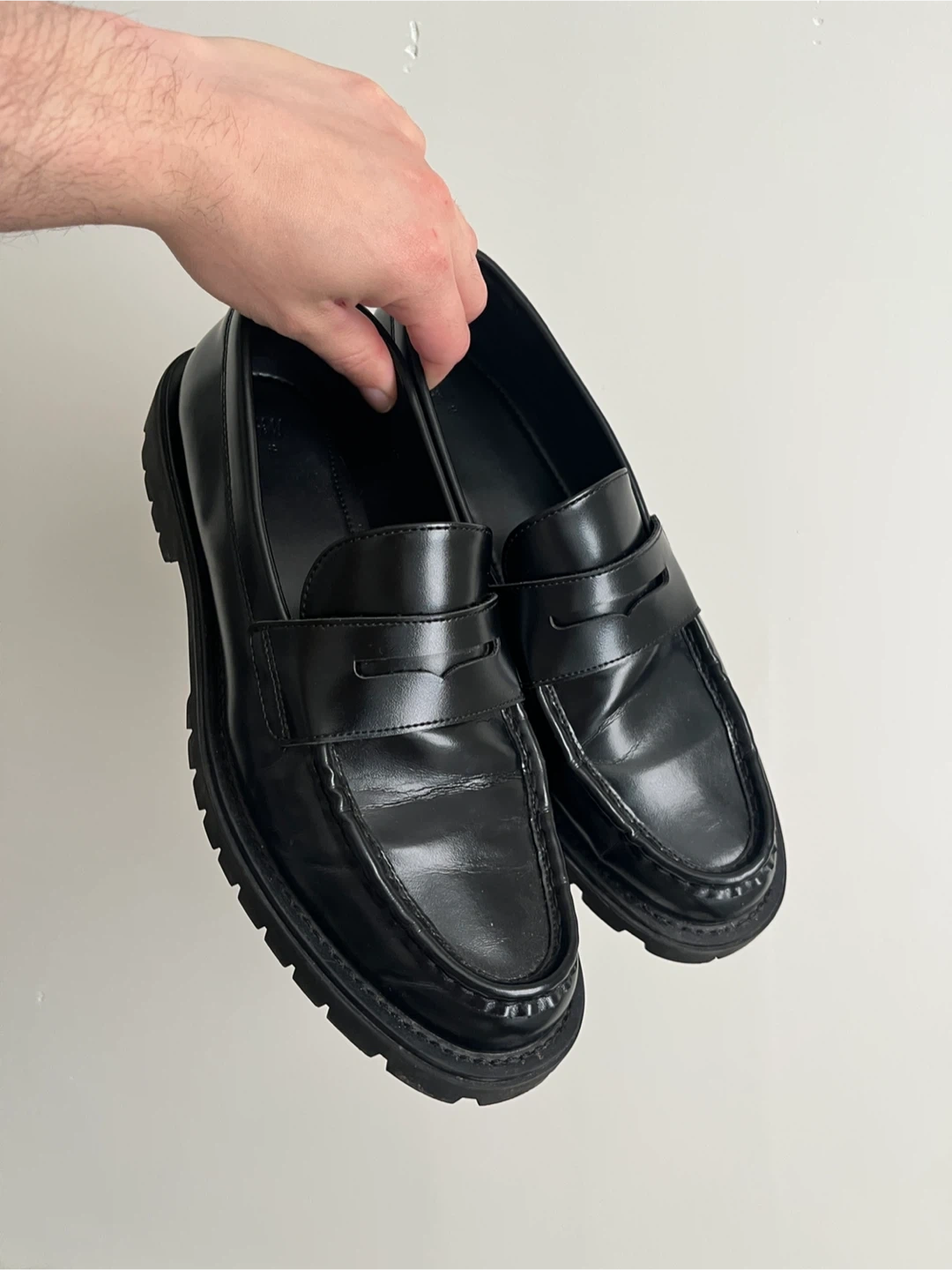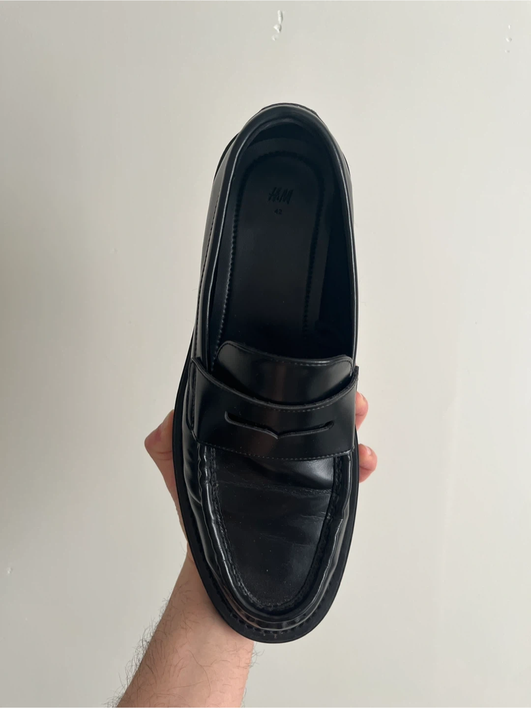 Classic black H&M loafers with a chunky sole. Size 42. These are great for everyday wear or dressing up.