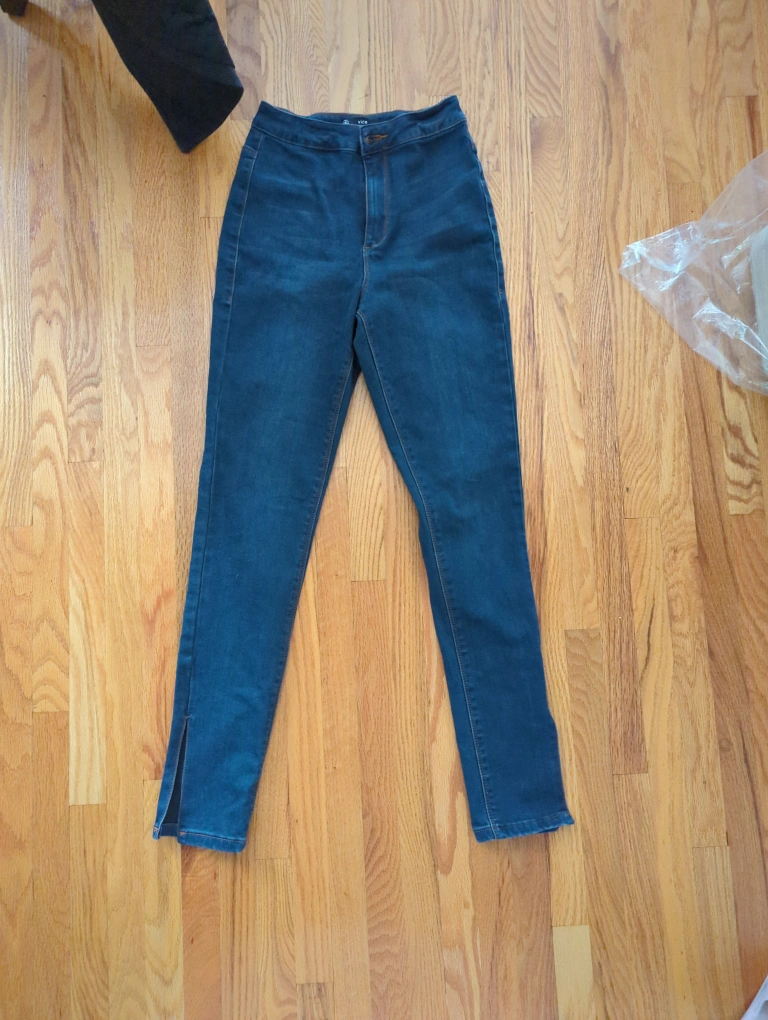 Dark wash high waisted tube jeans with a slit at the bottom of each leg. Size 0. Excellent condition.