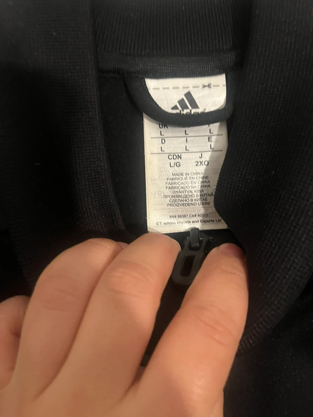 Black Adidas track jacket with Mexico crest and three-stripe detailing. Features climalite technology. Size 2XL.