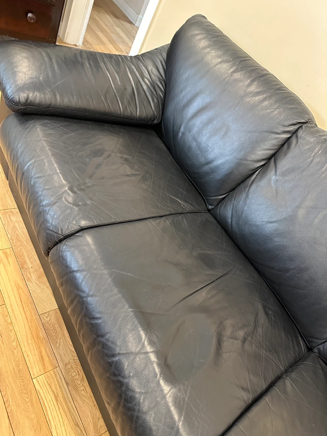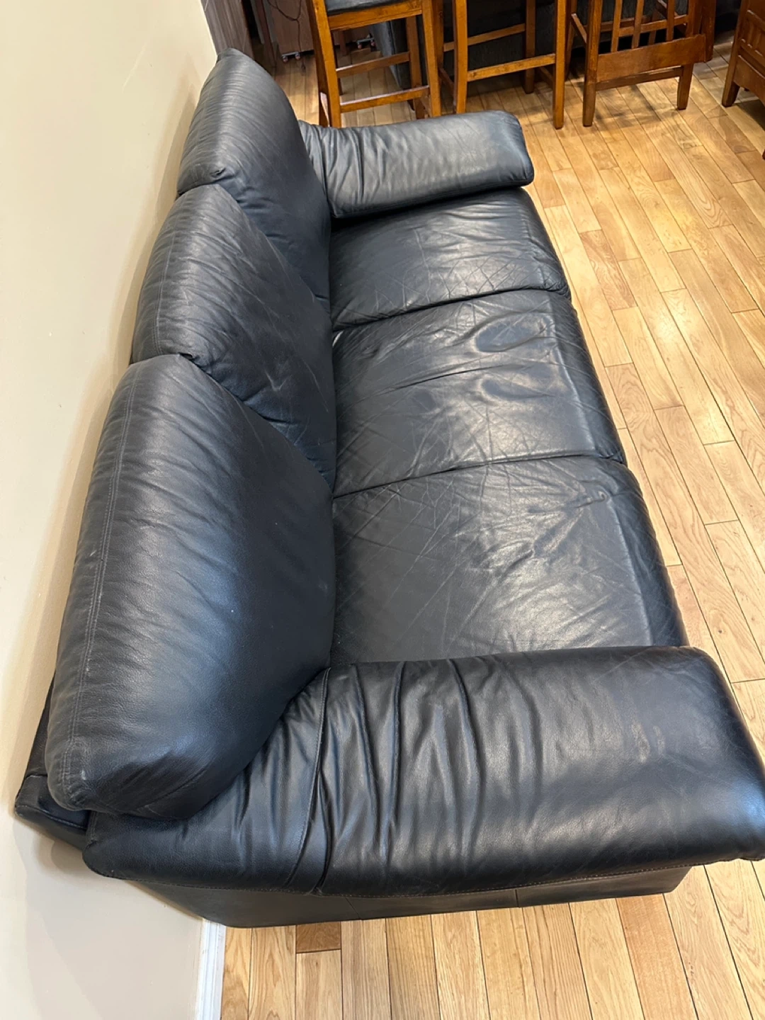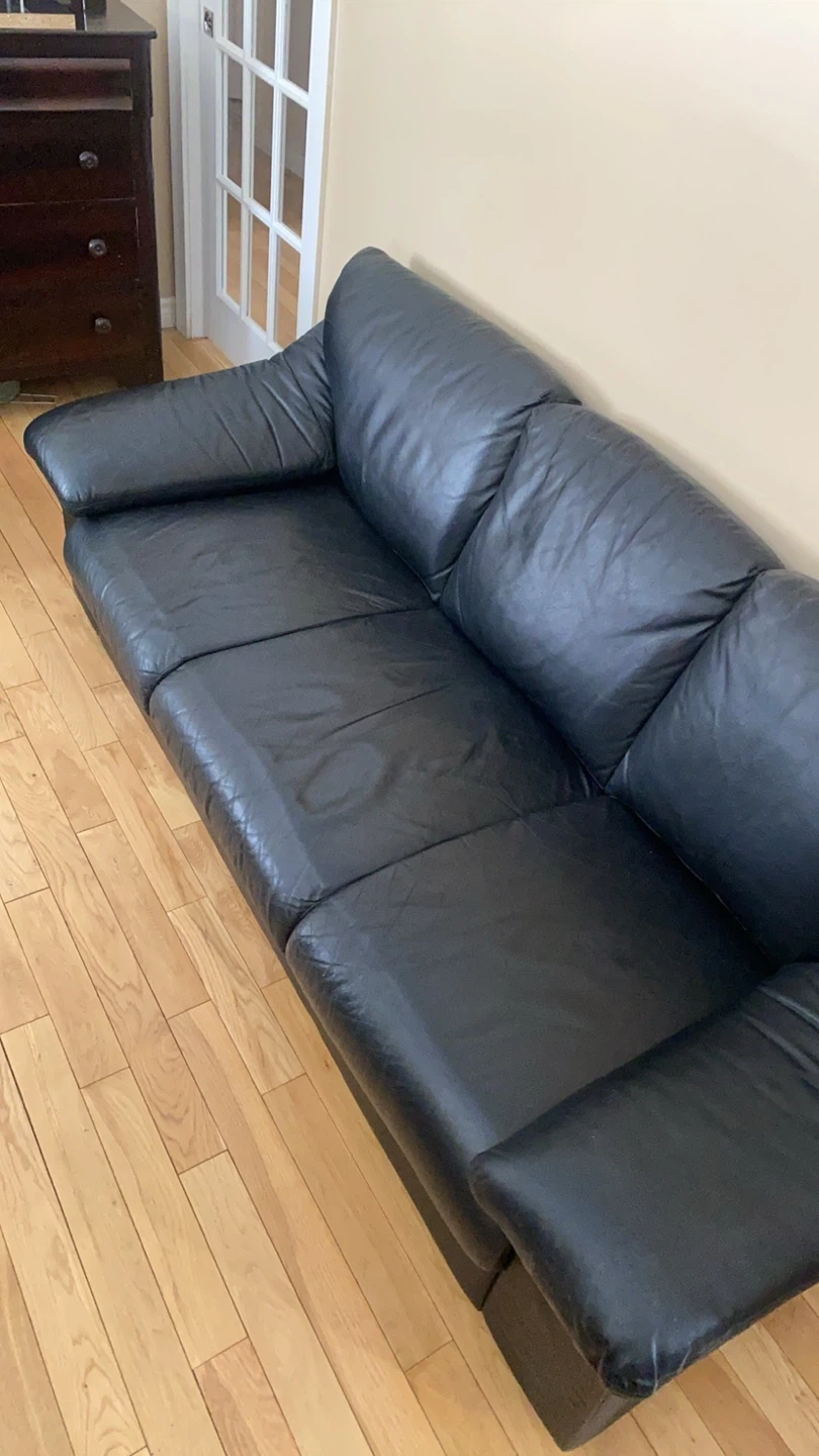 Beautiful Black Genuine Leather Sofa (CAN DELIVER)