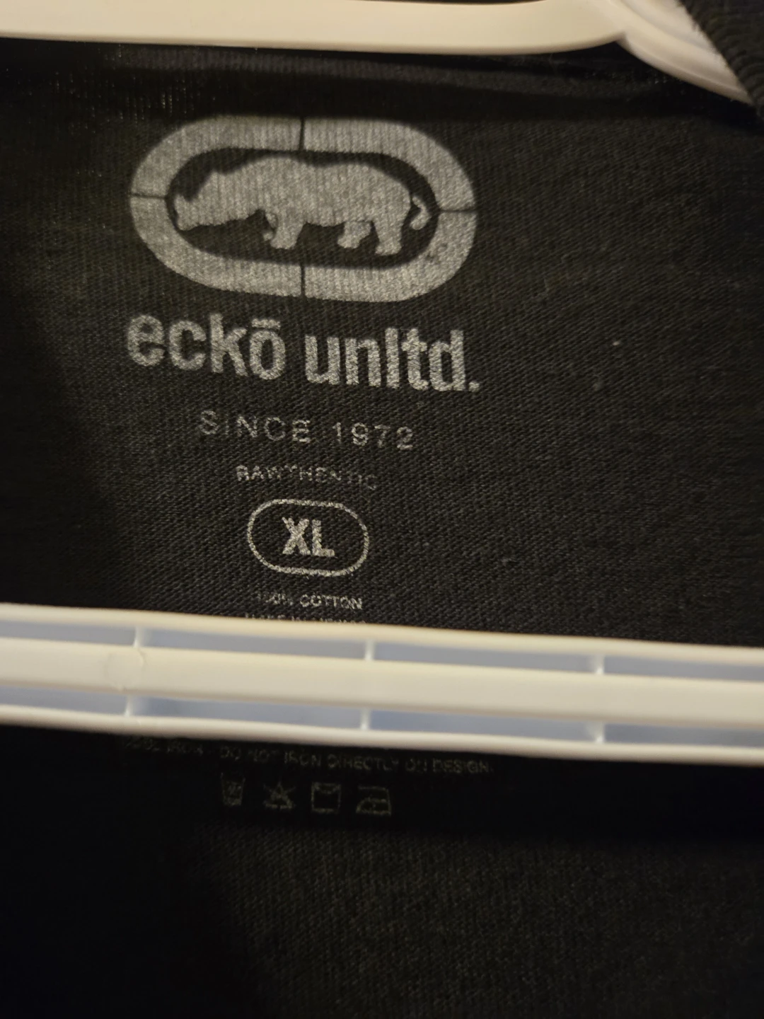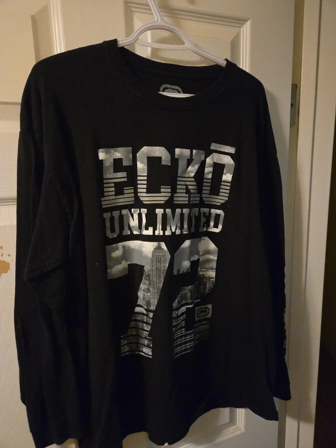Selling an Ecko Unlimited long sleeve shirt in size XL. It's black with a cool graphic design on the front and the brand name on the sleeve. The material is 100% cotton, so it's comfy to wear!