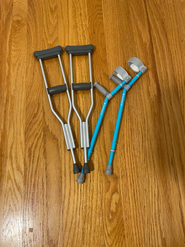 These are two sets of original American Girl Doll crutches; perfect for adding a touch of realism to your child’s doll play or collection. The set includes a grey pair of standard crutches and a vibrant blue pair of forearm crutches. Both are in good condition, ready for a doll in need! These are great for kids who like playing hospital or doctor.
