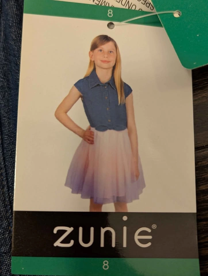 Zunie Girls Denim Tulle Ombre Dress Size 8 NWT