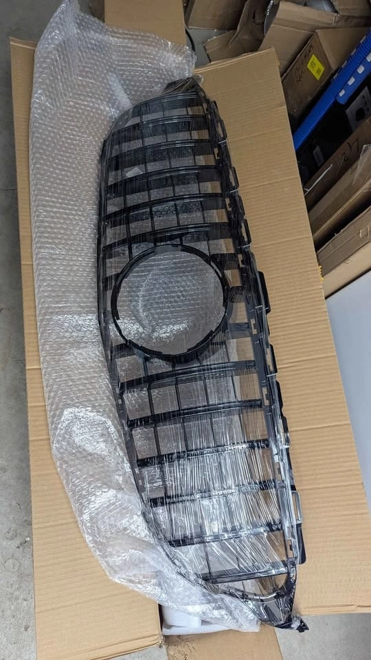 Brand new in box, never installed. This front grille fits 2019-2021 C-Class W205 LCI models (C250, C300, C350, C400). Will NOT fit C63, C63S, or C43 models. Package includes one front grill; emblem or badge not included. Made from durable ABS plastic with a gloss black finish. Direct replacement using original clips, no modifications needed.