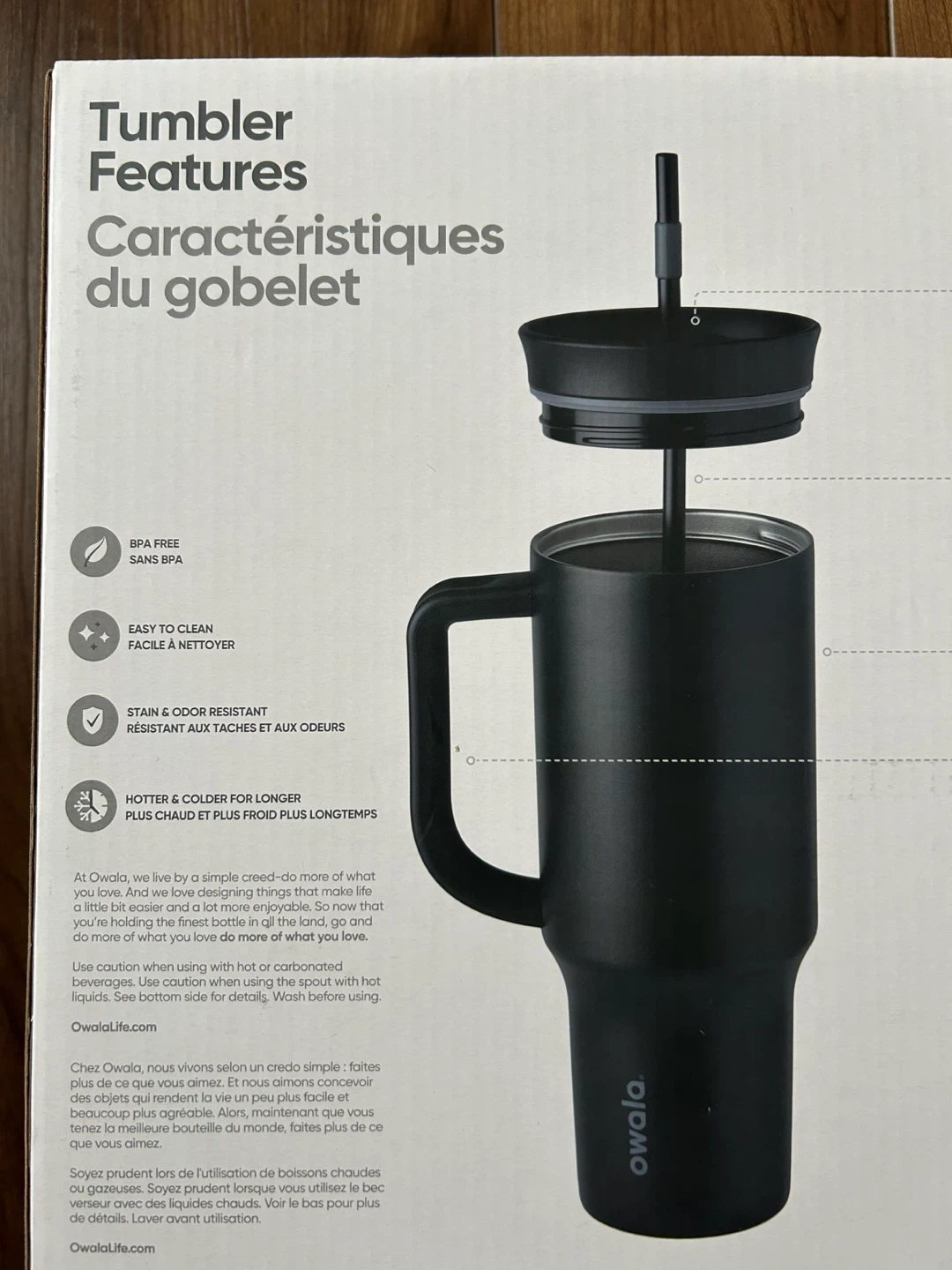 Brand new 1 Owala tumblers 40oz (1185mL) tumblers. They feature a 2-in-1 splash-resistant lid with a removable straw and triple-layer insulation. The tumblers also have an easy-to-grip handle.