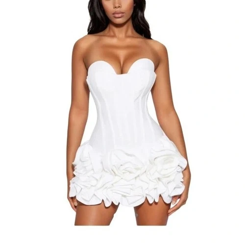 Fashion Nova Blessed Beauty Ruffle Mini Dress White Small