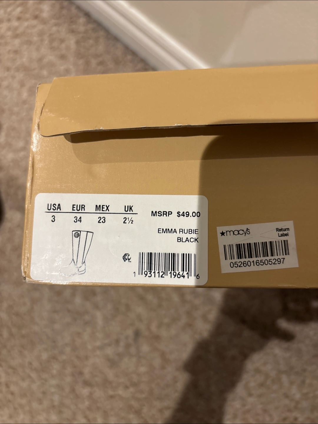 Buy & SellMichael Kors Emma Rubie Black Boots - Size 3Michael Kors Emma Rubie Black Boots - Size 3$30Selling a pair of Michael Kors Emma Rubie boots in black. They are size 3 (US). The original retail price was $49. Comes with the box!ConditionNewBrandMichael KorsWHERE TO MEETCheck LocationView MapSELLERverifiedJoeRichview18411 reviews1 chats·1 favorites·146 viewsSEND CHAT TO SELLERHi Joe! I’m interested in your listing.Hi Joe! I’m interested in your listing.Get the Karrot app to chatSign In to chat